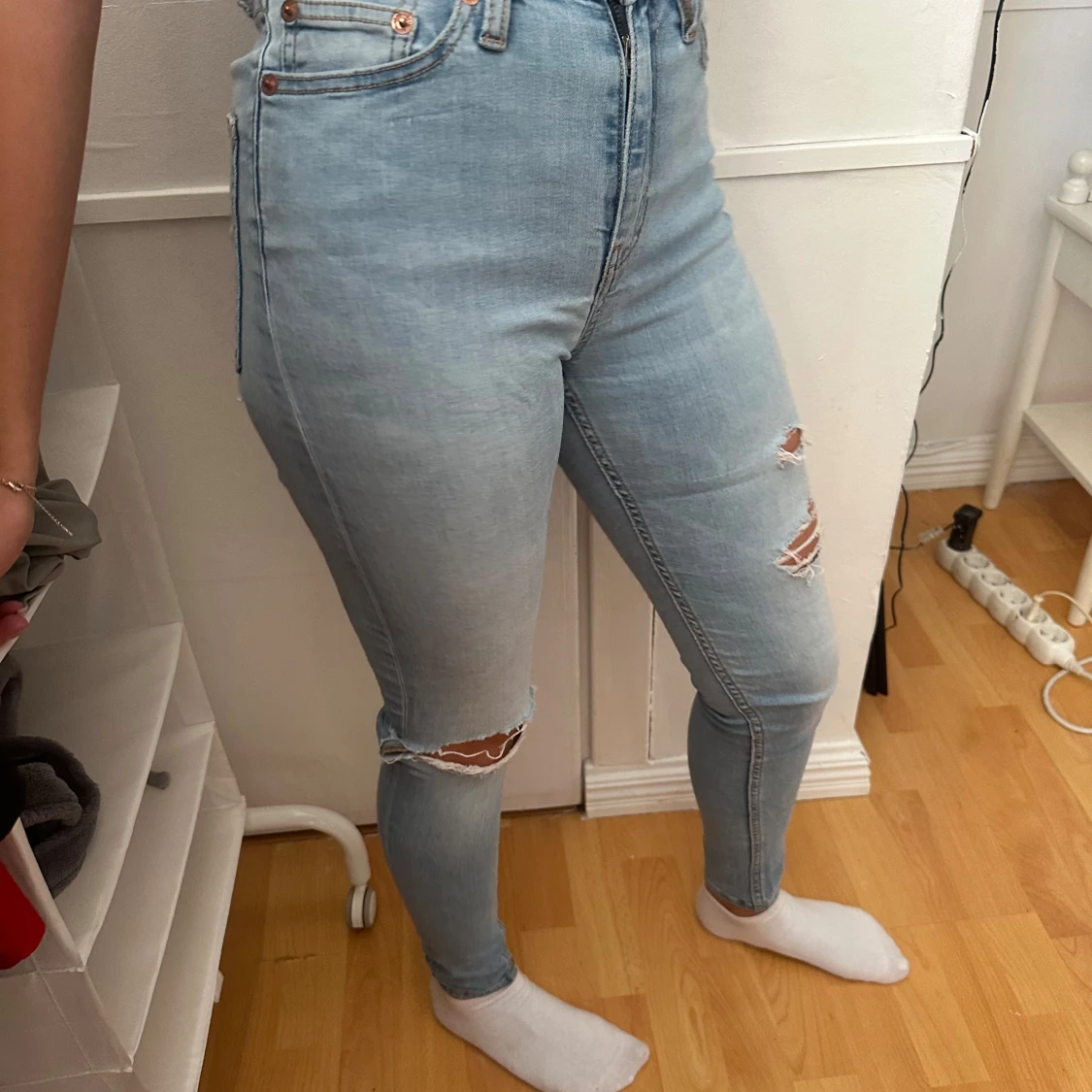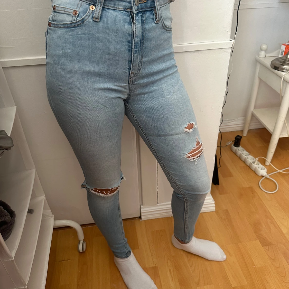 Blåa high waist skinny jeans från Lager 157, sparsamt använd! Storlek XS