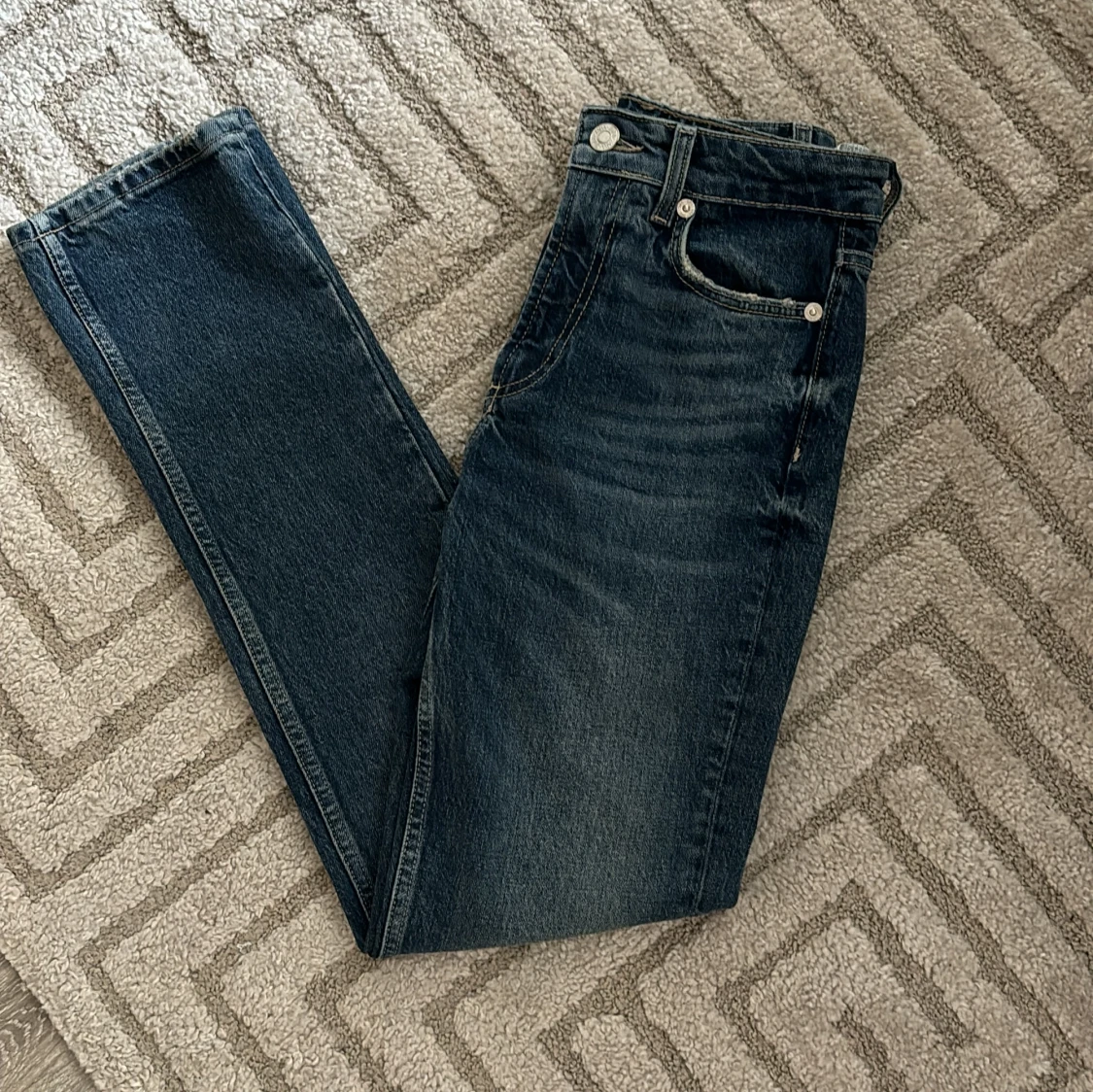 Säljer dessa blåa raka jeansen då dom är för små. Mycke fint skick.