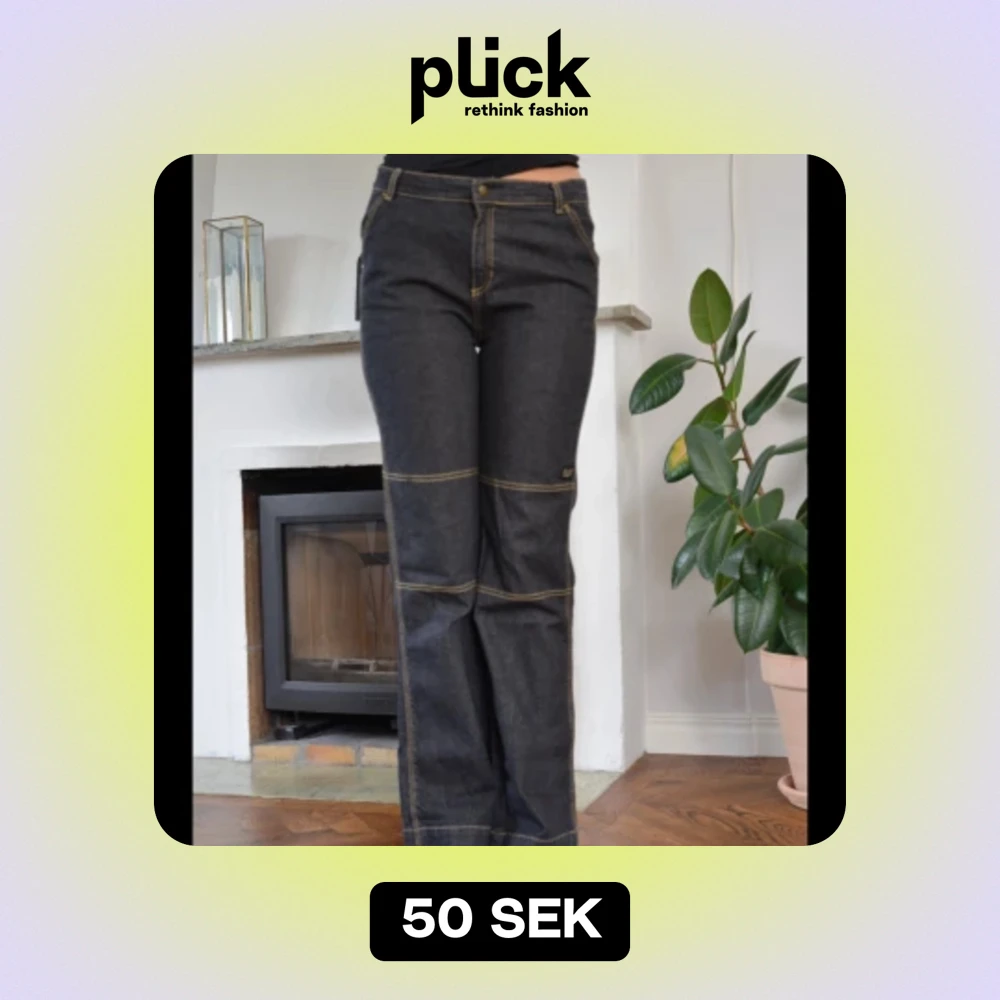 Mörkblå coola jeans från Lingon & Blåbär swedish design (L&B). Dom sitter midwaist på mig som är 175. Väldigt bekväma. Midjemått: 37cm mätt rakt över. Innerbenslängd: 76,5cm