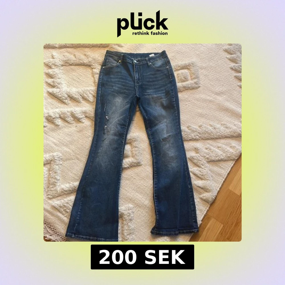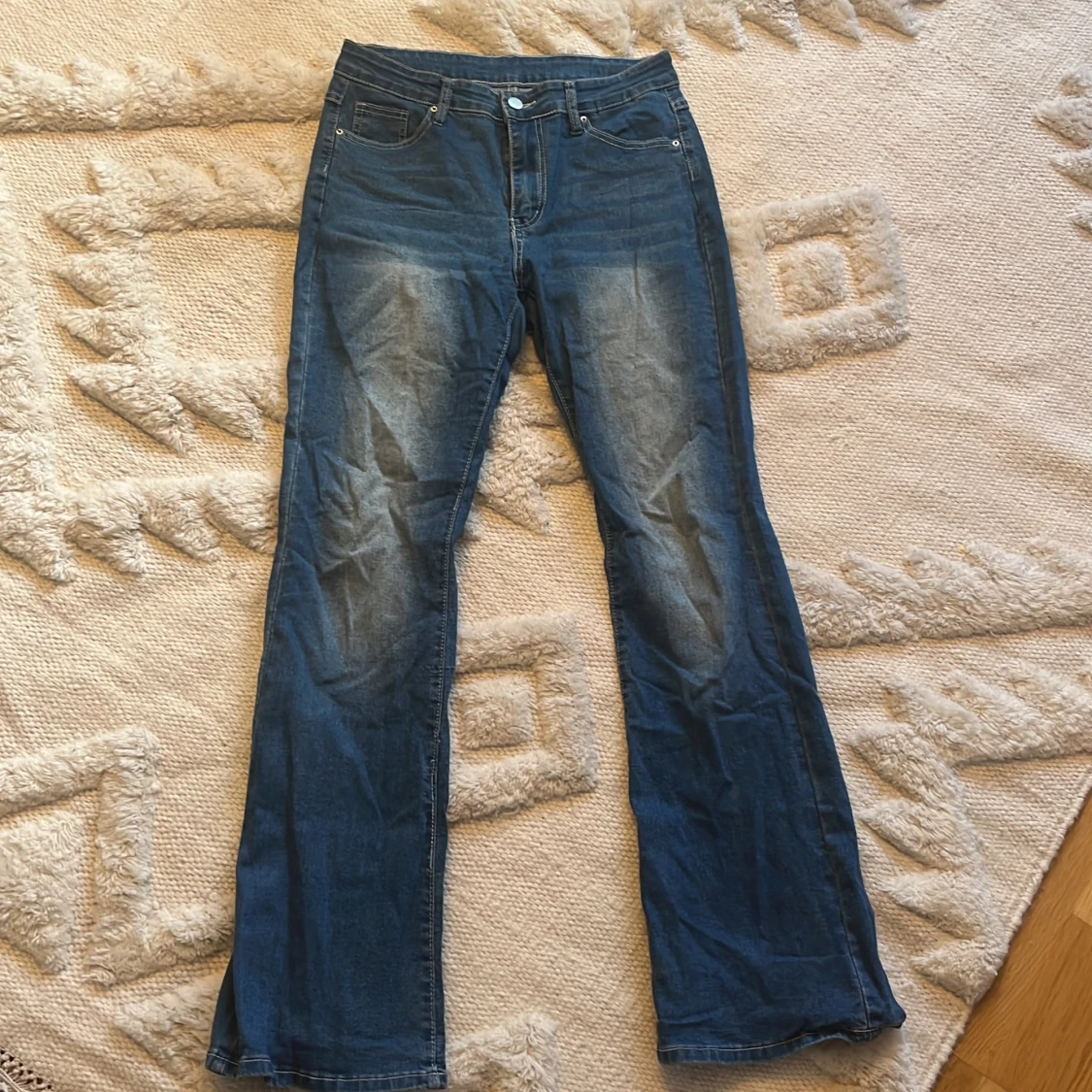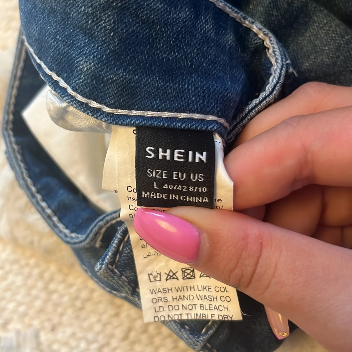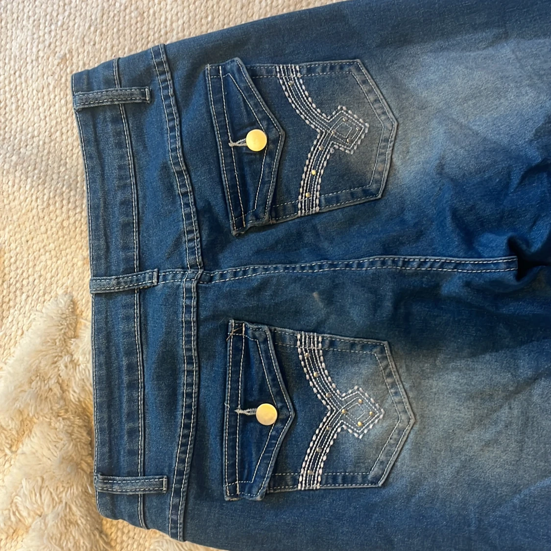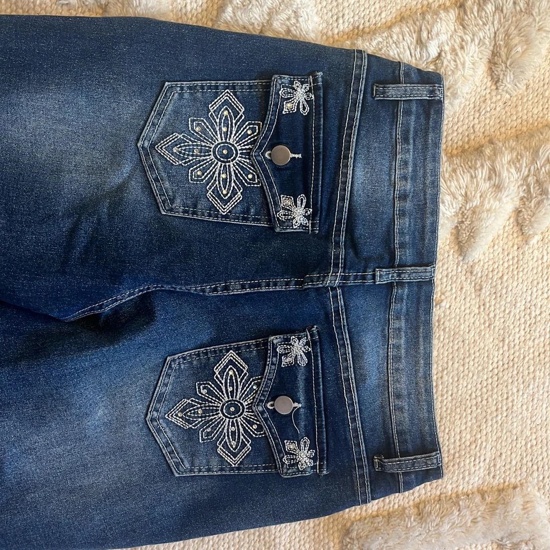 Blå y2k jeans med dekorerade fickor. Dom är i storlek large! Från shine🤗dom är i bra skick!