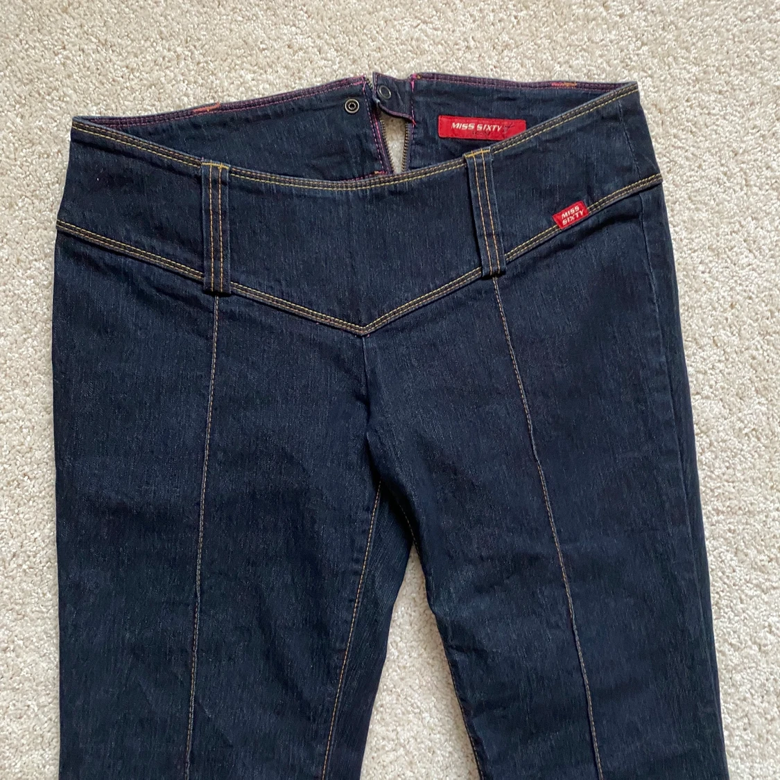 Superfina Miss Sixty jeans i modellen " Nixie One ". Såå snygga men alldeles för små på mig, kan inte ta en bild med dom på :( midjan är 43cm och innerben 80cm. Frakt tillkommer