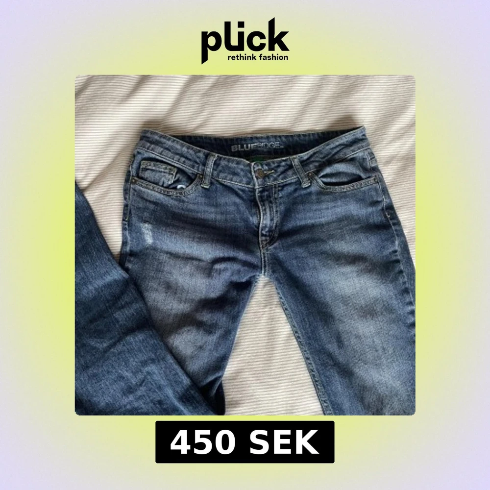 Snygga blå lågmidjade bootcut jeans från Blue Ridge. Litet slitage längst ner på byxbenet annars inget märkbart slitage. Midjemått: 40cm rakt över. Ytterbenslängd: 106cm. Innerbenslängd: 83cm.💕