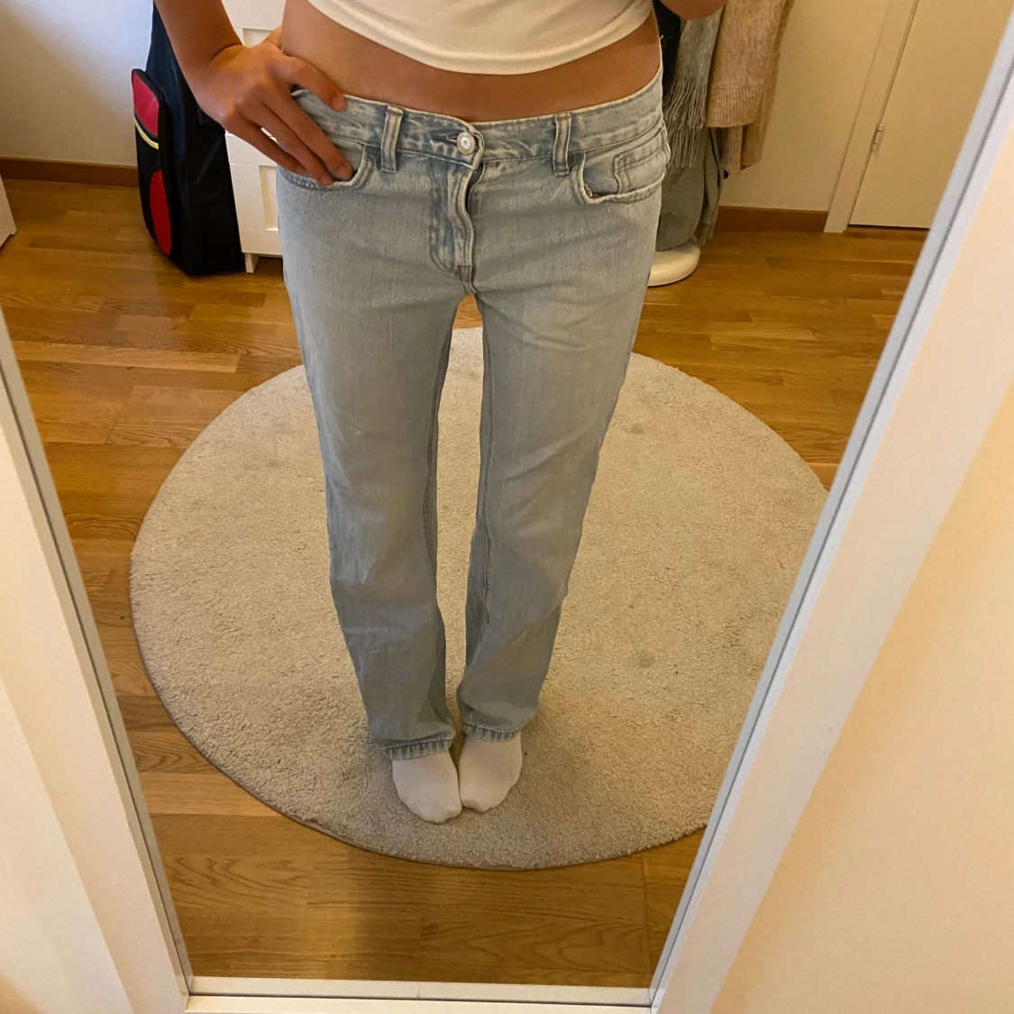 JÀttefina ljusblÄa jeans 𩔠de Àr för det mesta i bra skick förutom en liten blÀckflÀck pÄ ena backfickan men som sÀkert gÄr att fÄ bort!!