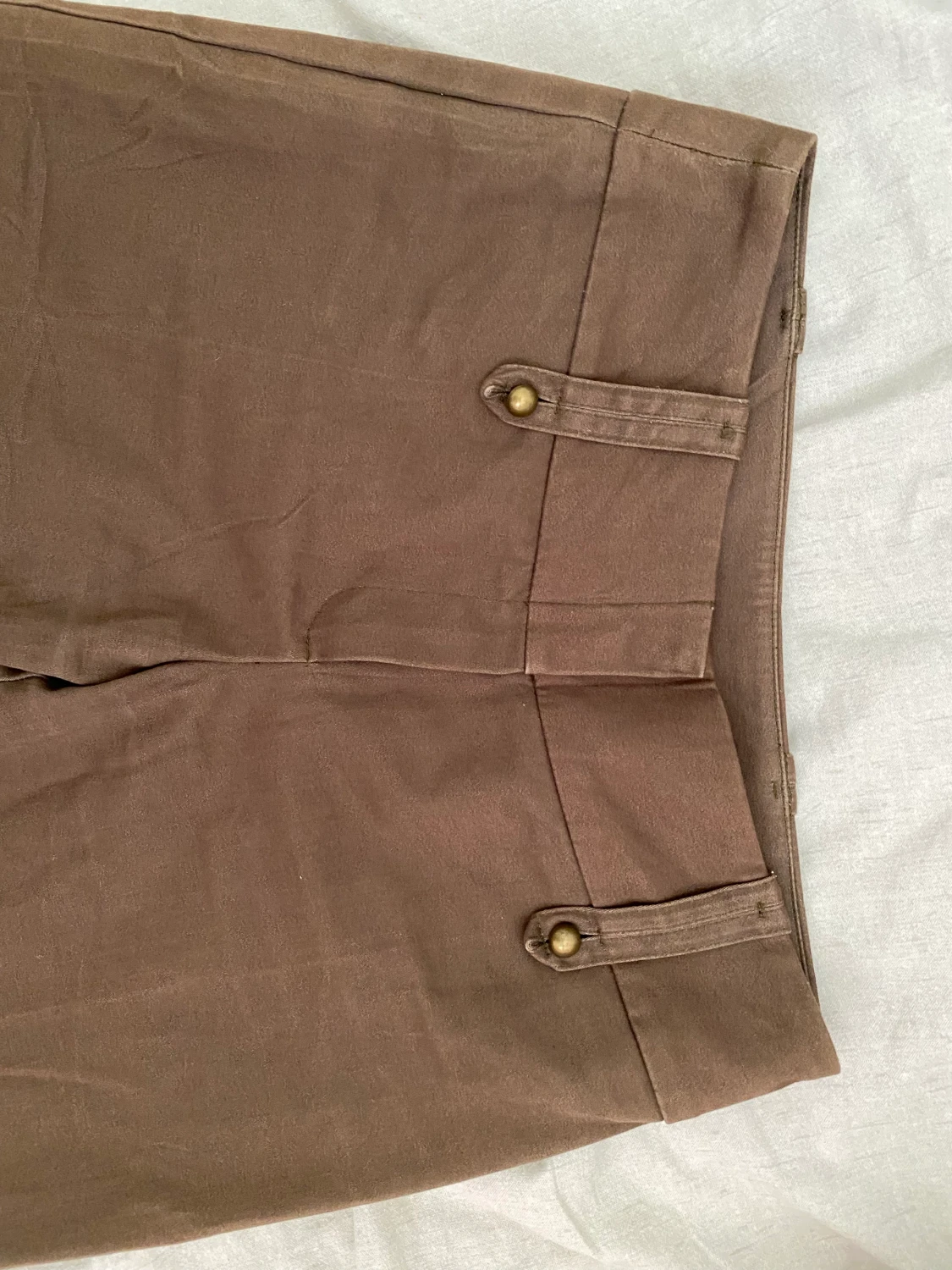 Lite mer gröna i tonen än på bild. Skitsnygga byxor, minns ej vart jag köpt och vet ej vilket märke. Hyfsat långa i benen 80cm. 35-36 midjan.