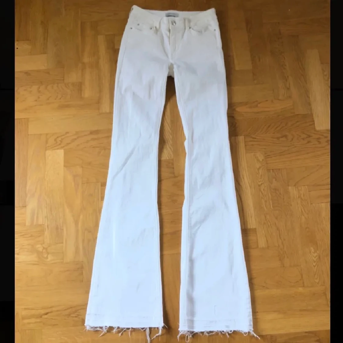 Vita bootcut jenas jätte fina aldrig använt pågrund av att de va för korta för mig. Stretchiga och framhäver kroppen jätte fint! Köpt för 500kr säljer för 100