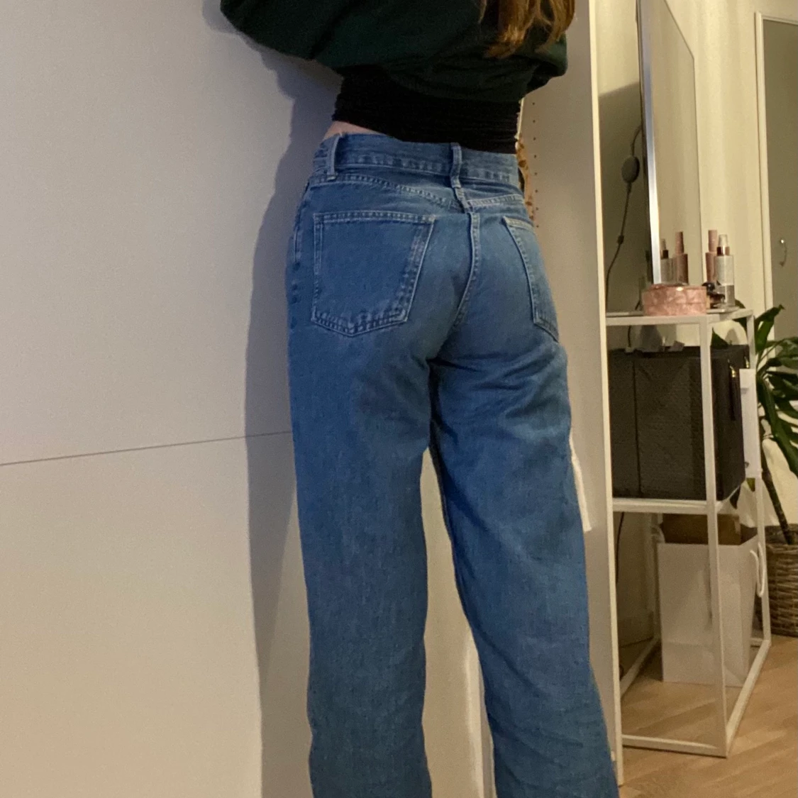 Mörkblåa högmidjade straight jeans från zara i storlek 34 men de sitter som typ en 36💕