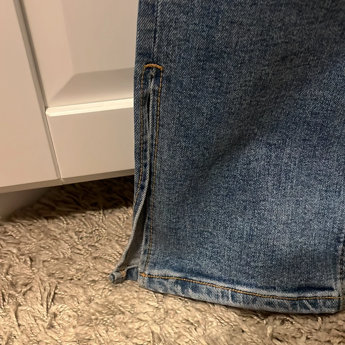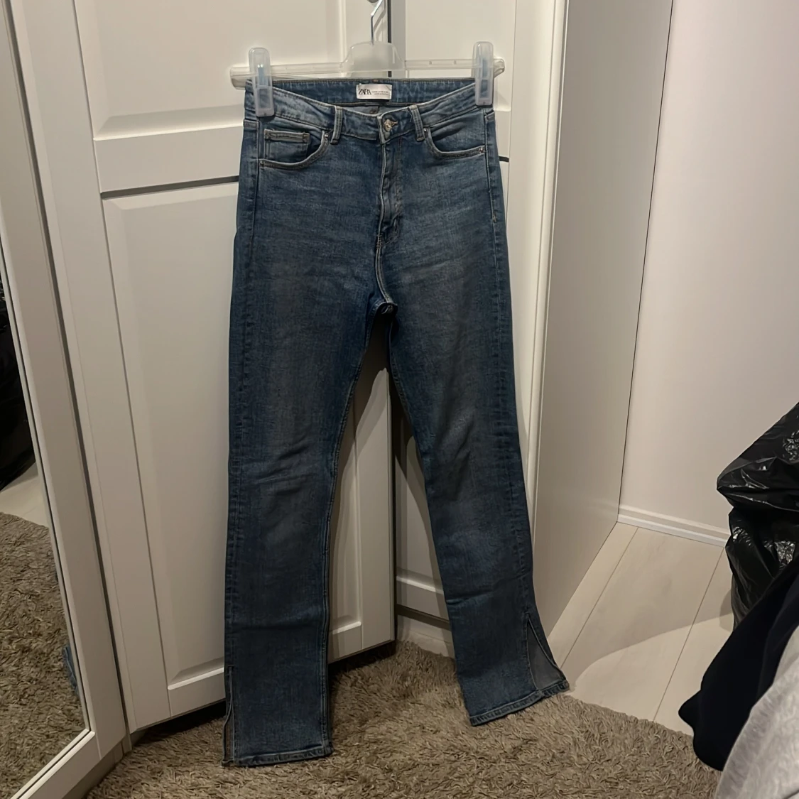 Mellanblåa jeans med slits. Från Zara, storlek 38.