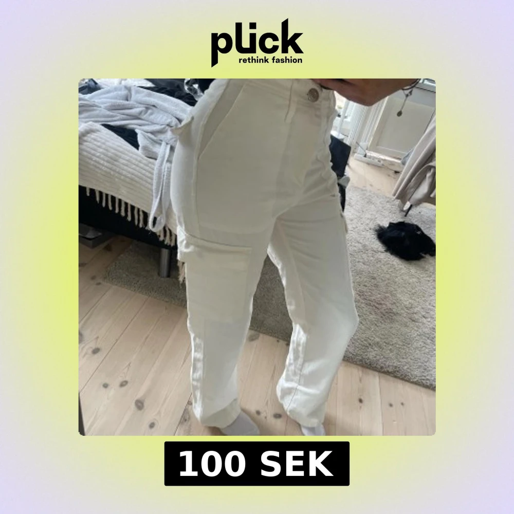 Vita cargo liknande byxor med raka ben, använd fåtal gånger, storlek 32