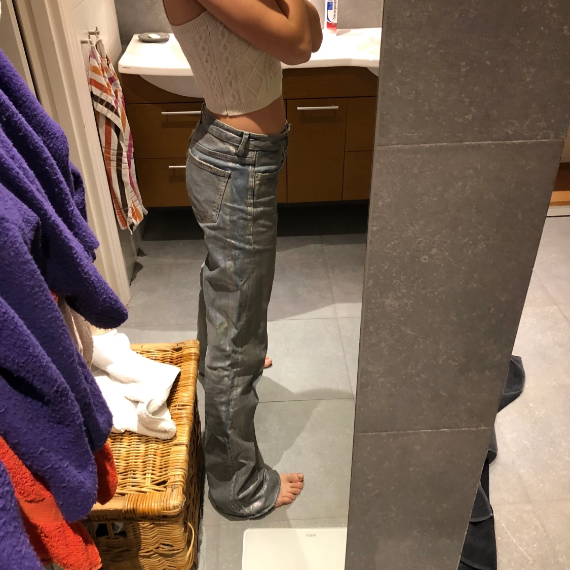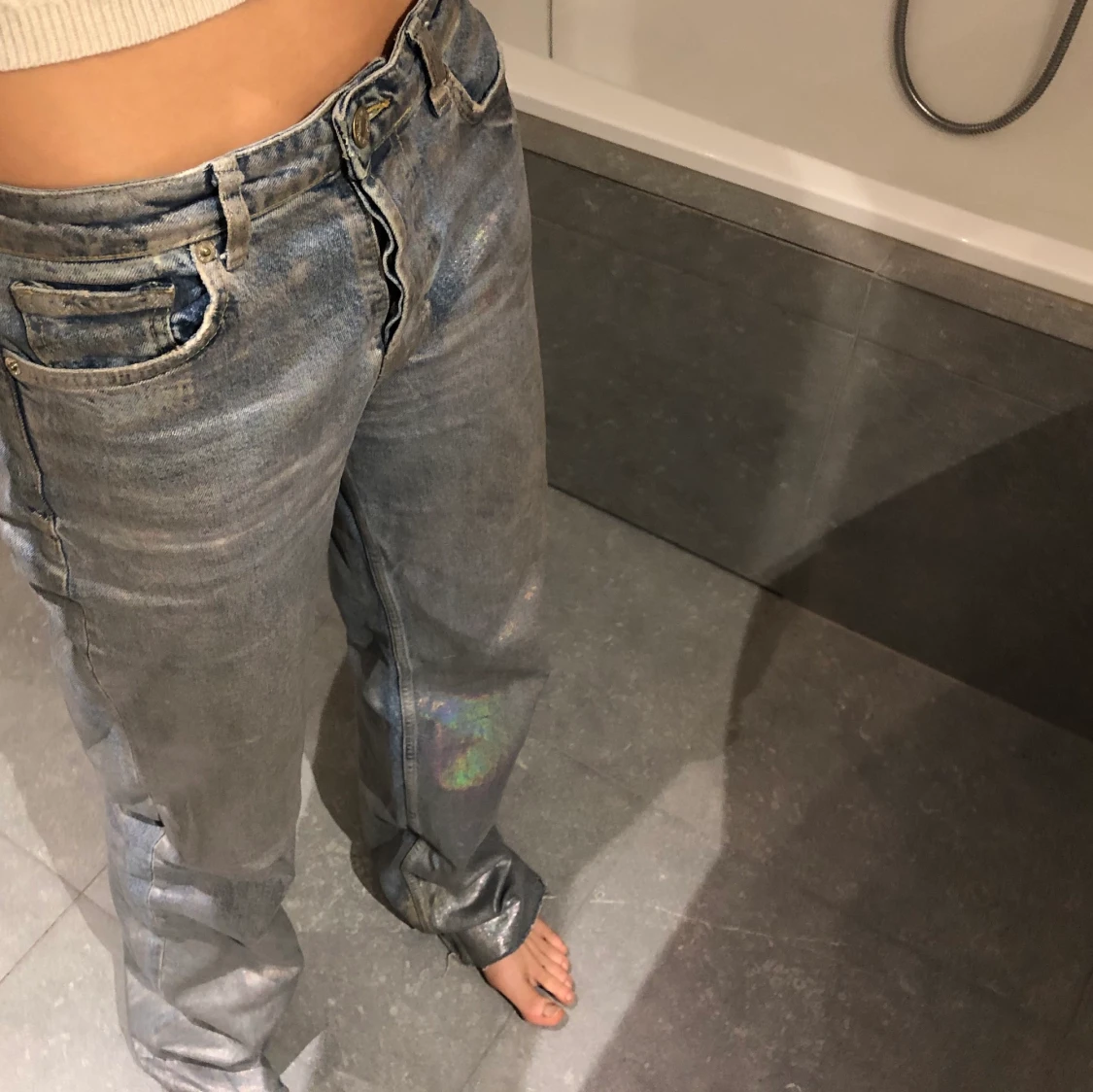 Första bilden är från när ja precis köpt dom, dom har tappat färg, andra bilden visar bäst hur dom ser ut nu. Storlek 38. Jag är 177 o brukar ha xs/s. Budgivning privat eller i kommentarerna💞💪🏽 BUD: 570kr