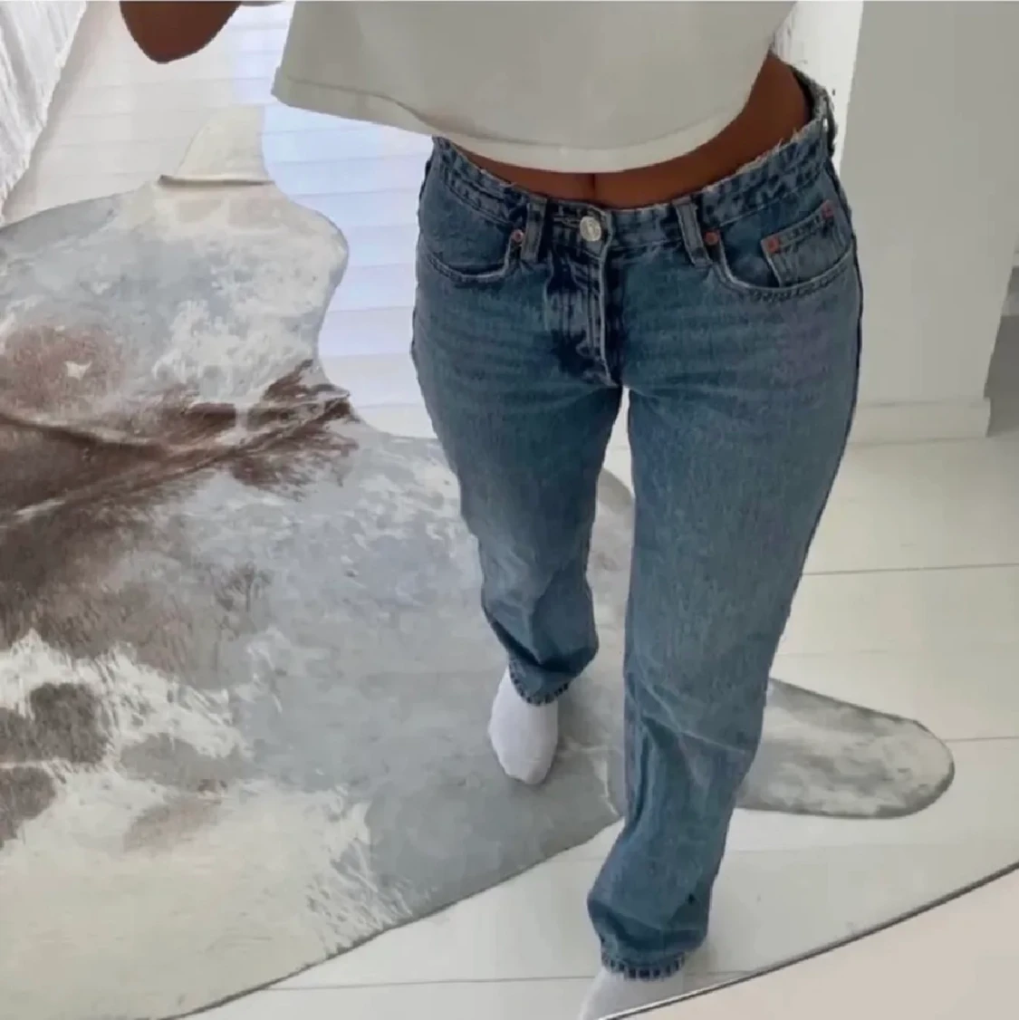 Säljer ett par mid rise straight full length jeans ifrån zara i storlek 36. LÅNGA!!!! innerbensmåttet är 85 cm💙 150kr+ 66kr frakt eller mötas upp i Stockholm