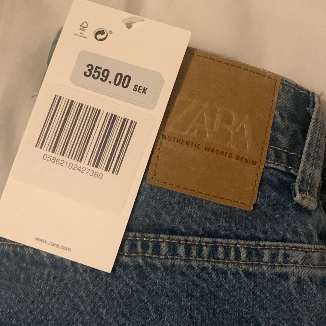 Superfina jeans från Zara som jag tyvärr beställde i fel storlek. Jag är 1,75 lång och de är till o med lite för långa för mig. Modellen är till för att man ska klippa de till sin egen längd, därav passar de alla. Köpte för 359 och är helt slutsålda på hemsidan! Skriv vid frågor🤍
