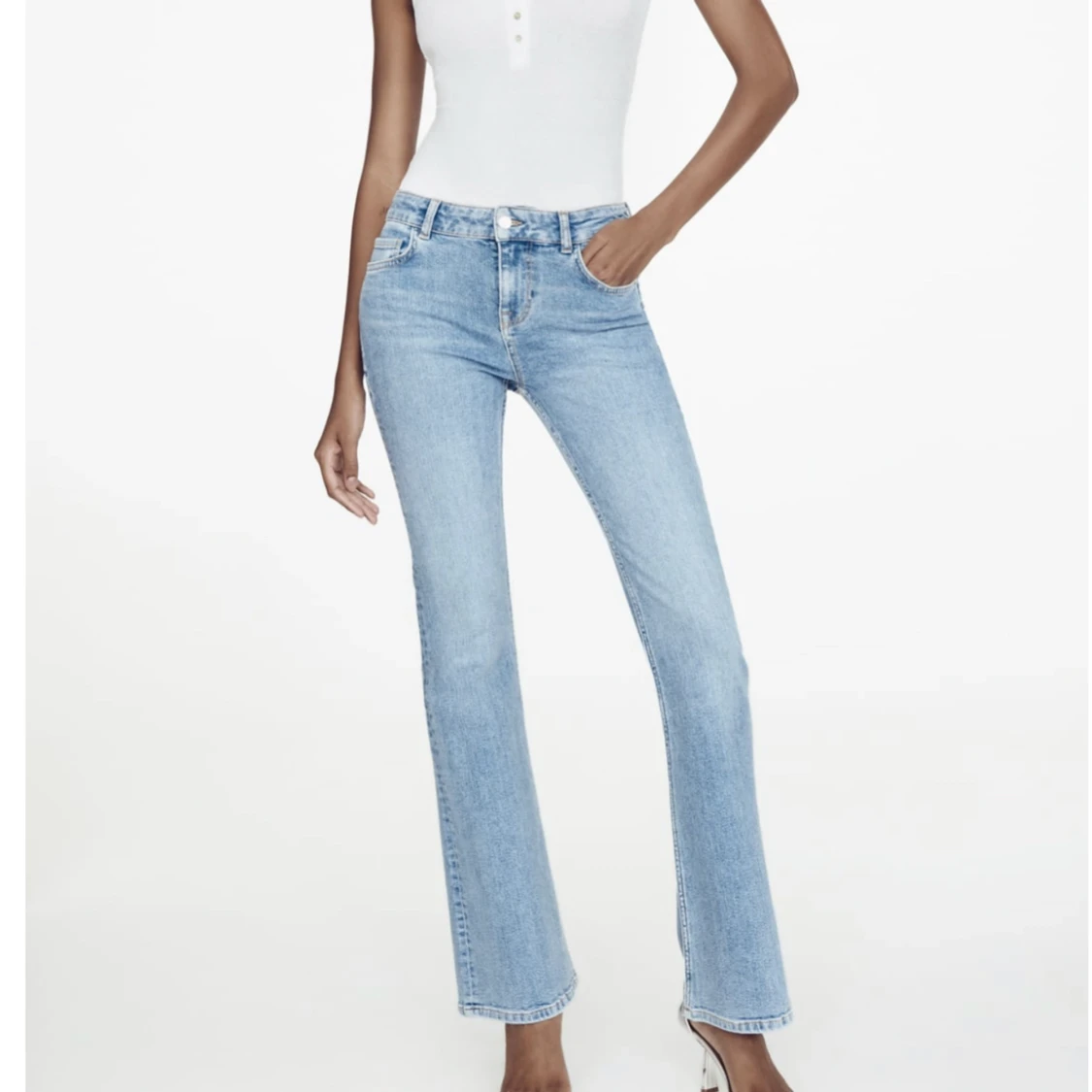 Säljer mina helt nya zara low jeans i ljusblå! Säljer pågrund av att dem satt för tajt på mig❤️❤️ tveka ej vid intresse eller för fler bilder!
