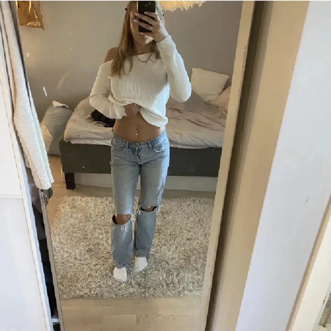 Säljer dessa jeans som är köpta här på Plick, storlek 38 passar 36, Midwaist . Lånade bilder