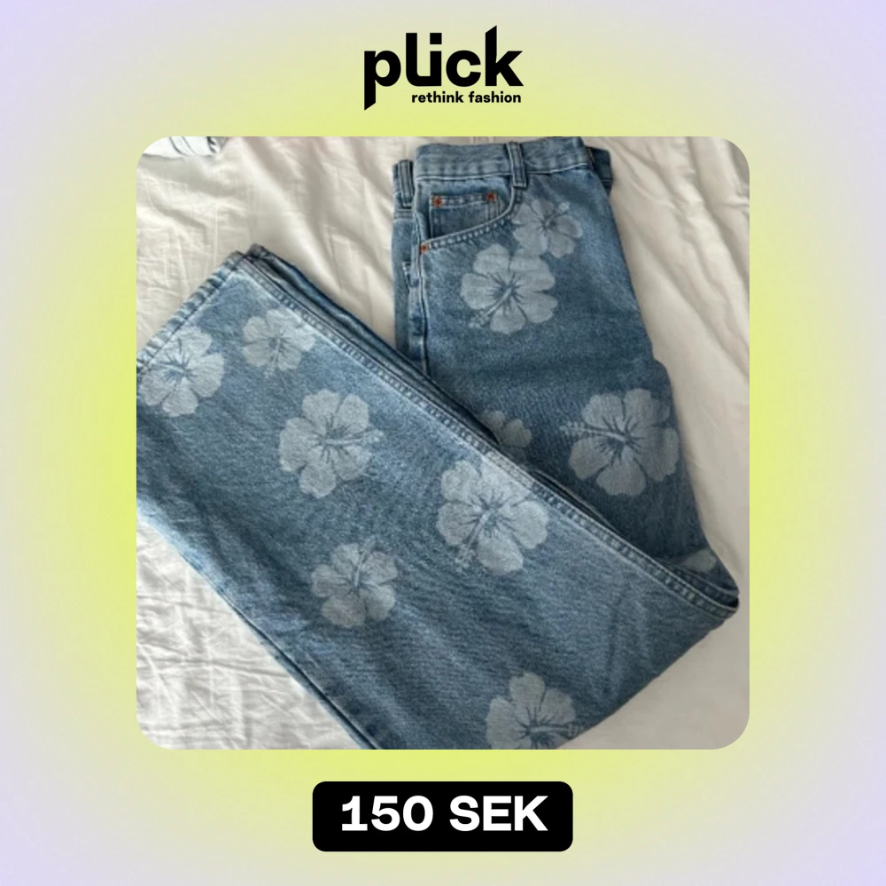 Snygga och annorlunda jeans från zara med blommor på. Säljer pga att de är för små för mig nu. Sparsamt använda. Super fina till vår/sommar.