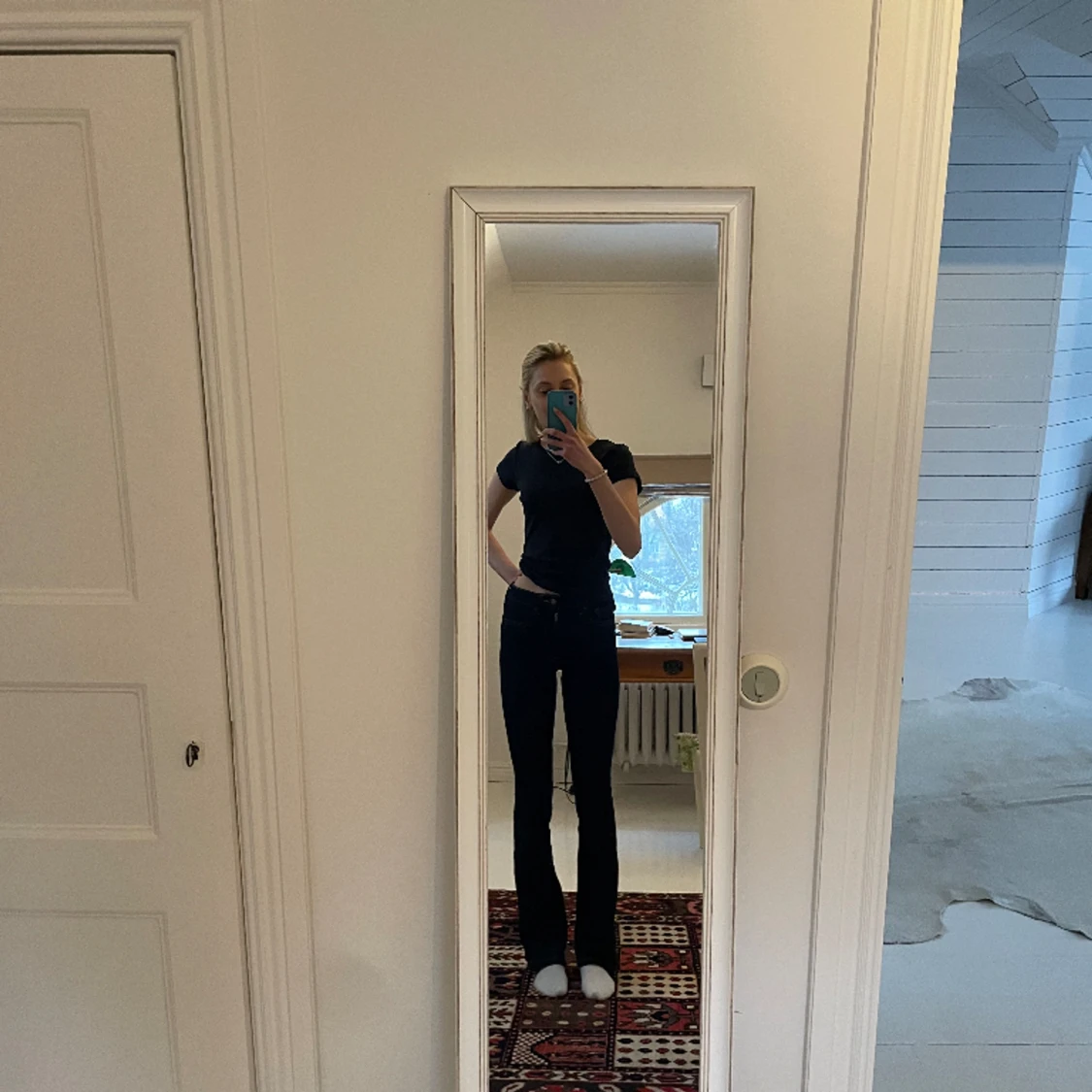 Långa och snygga jeans från Zara. Storlek 32 men passar även mig med storlek 34. Nästan oanvända och sitter som en smäck. Är 174 och går ända ner till marken.