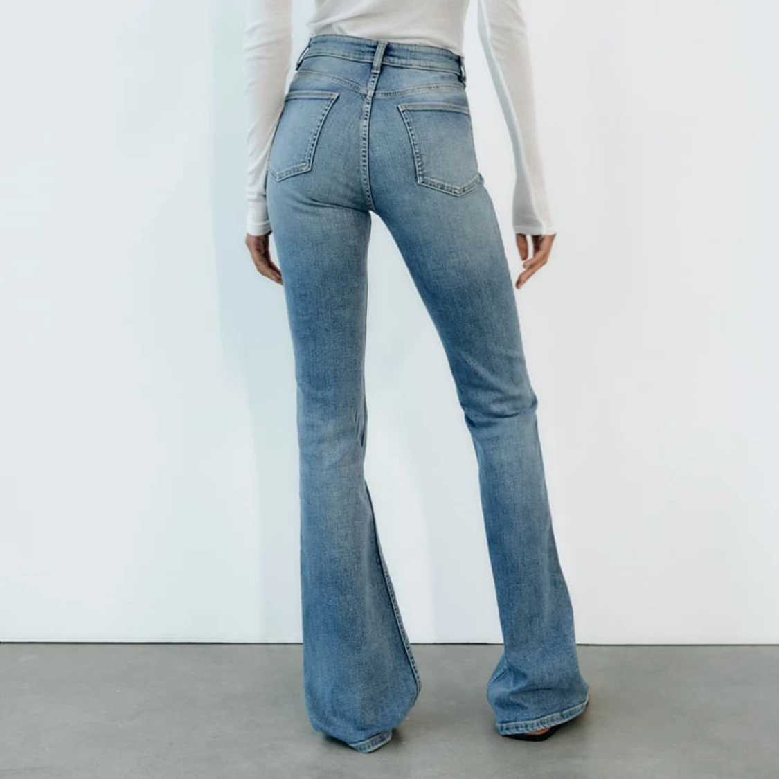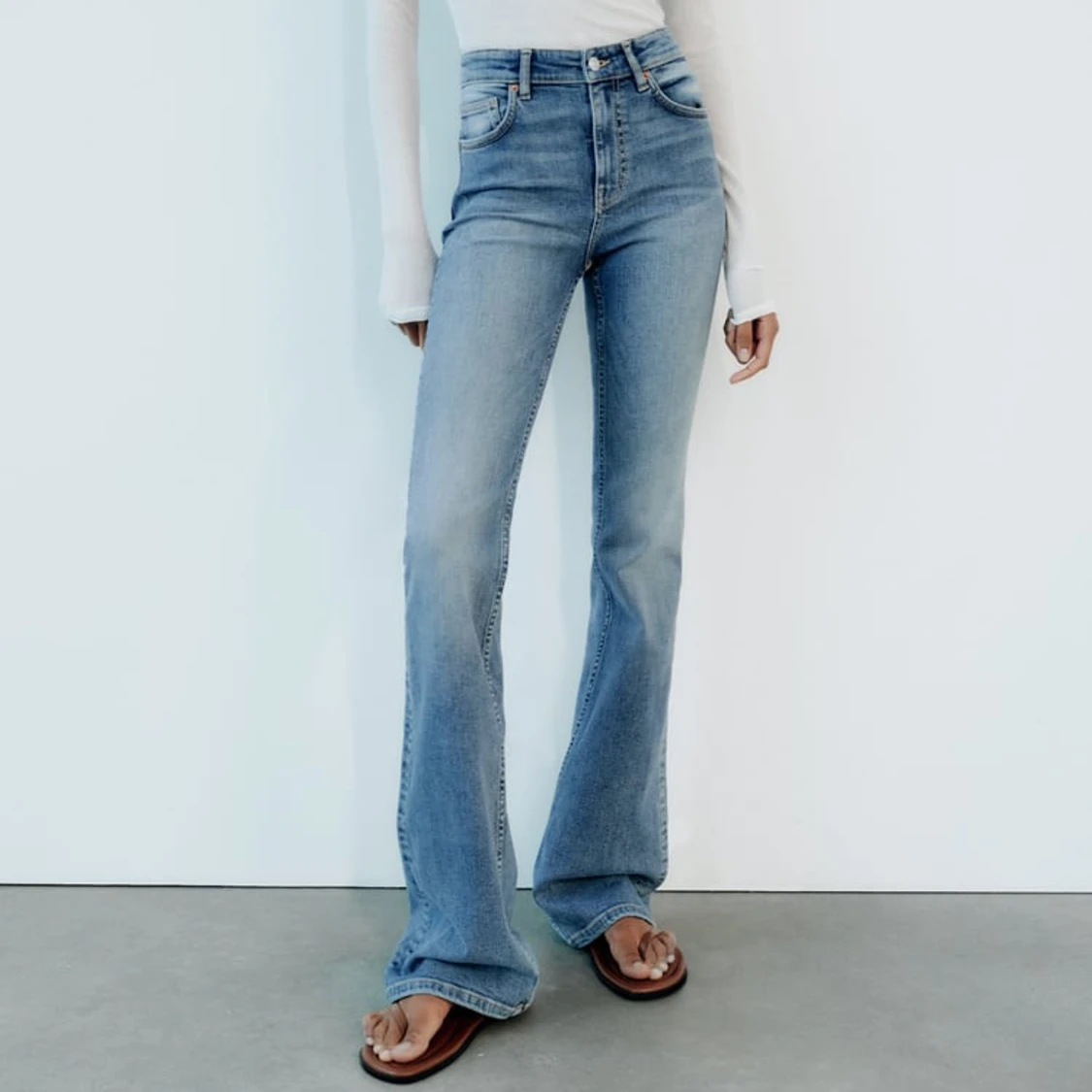 Jättefina bootcutjeans från zara med normalhög midja i storlek 36.