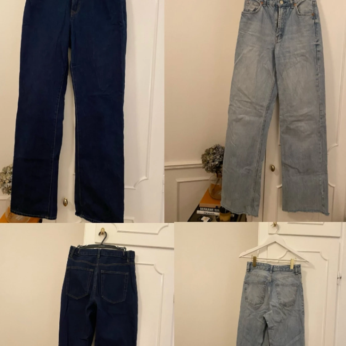 Två par jättefina high waist jeans från Zara och Lindex❤️på de ljusa Zara byxorna har hällorna för bältet gått sönder på båda sidorna (se bild ett), men annars skulle jag säga att de är i bra skick🩷kontakta mig vid frågor