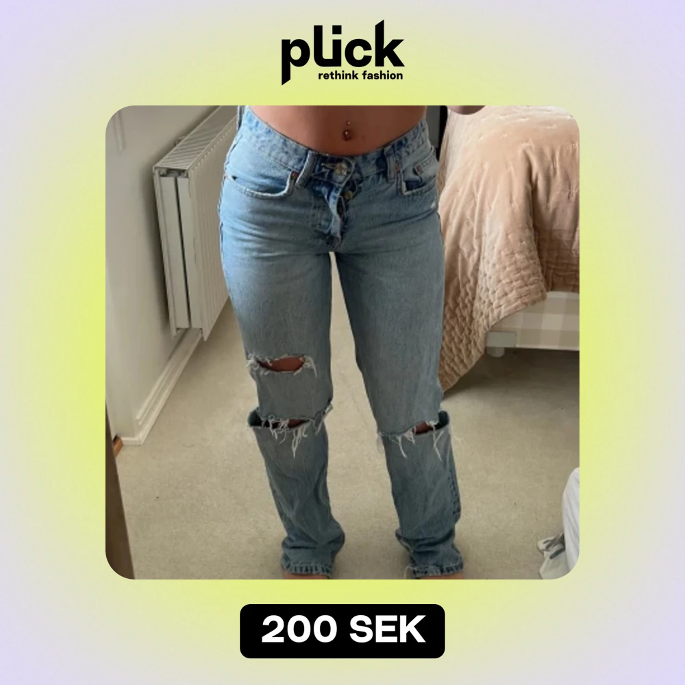 Säljer dessa skitsnygga jeans ifrån zara med slitningar då de är för små för mig. Storlek 34, som nya 🫶🏽🫶🏽