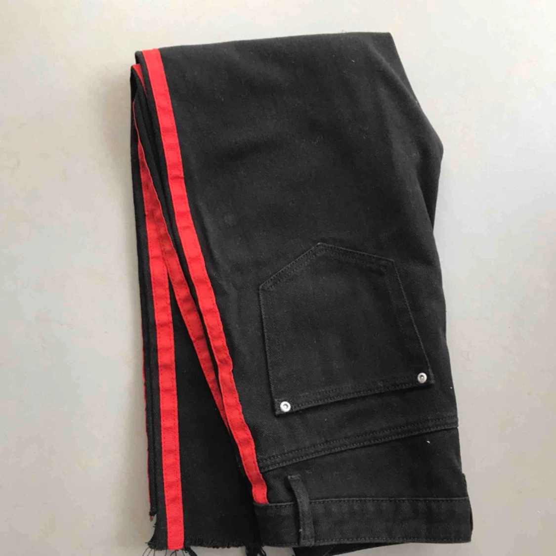 Svarta highwaist jeans med röda ränder, strl 38 Kan mötas upp i Stockholm!