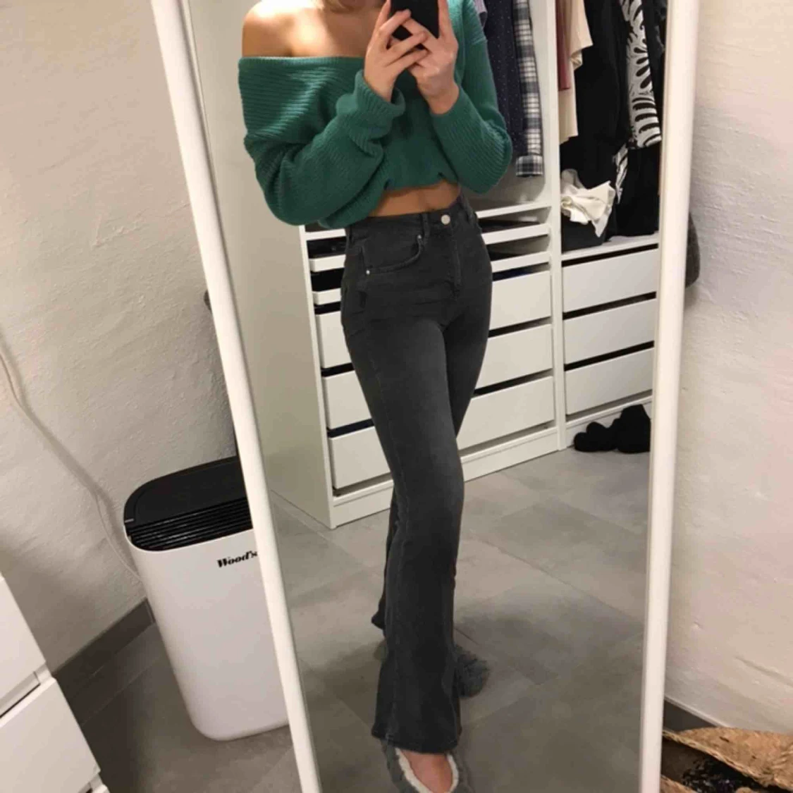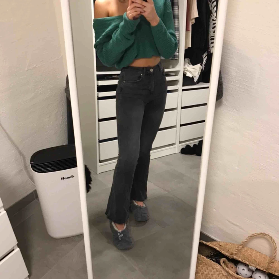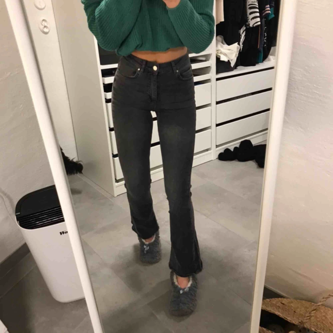 gråa bootcut jeans från GINA TRICOT, använda endast en gång, säljer pågrund av att de är för korta för mig som är 1,73 ⚡️🪐