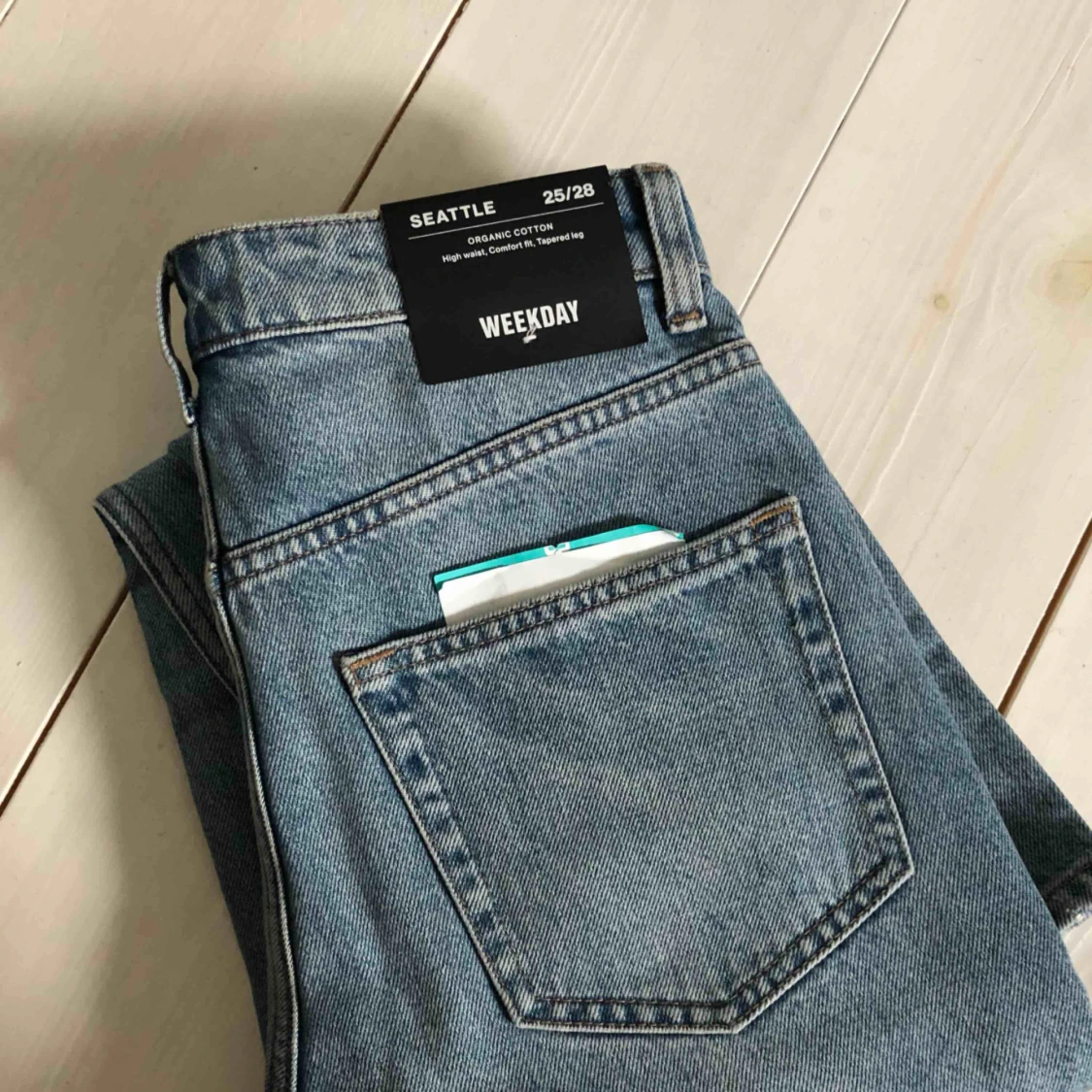 Helt oanvända jeans från weekday, fortfarande lappen kvar! Inte ett stretchiga material! Är tyvärr för små för mig därför jag säljer dom! Nypris: 500kr