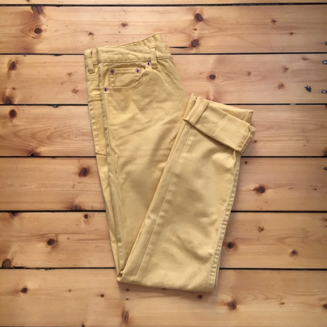 Gula jeans från Weekday, medelhög midja som slutar strax under naveln! Stretch i tyget!