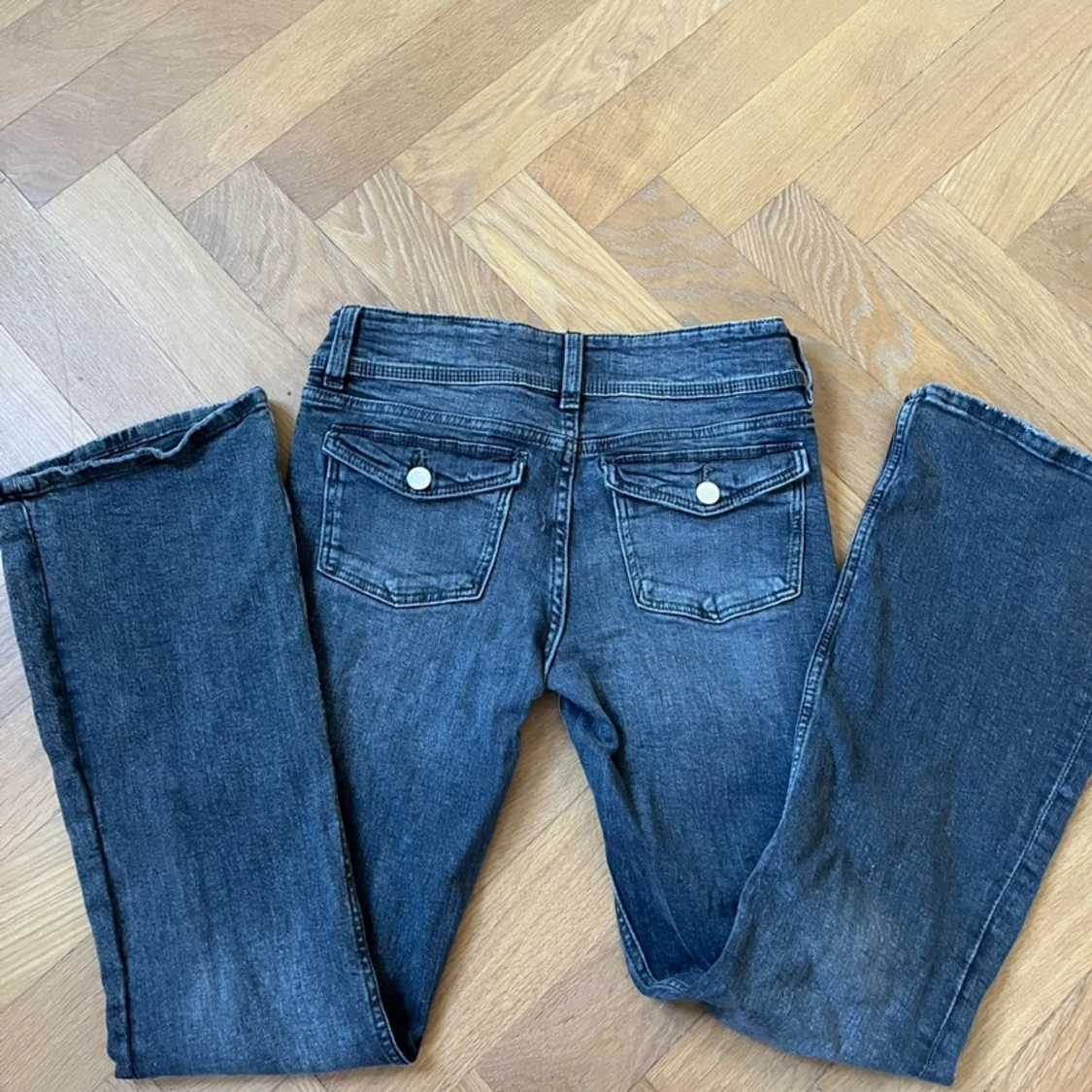 Snygga low waiste bootcut jeans från Gina Tricot som inte har blivit så mycket använda. Det är storlek 158. Skriv till mig ifall ni vill ändra priset eller ha mer bilder.