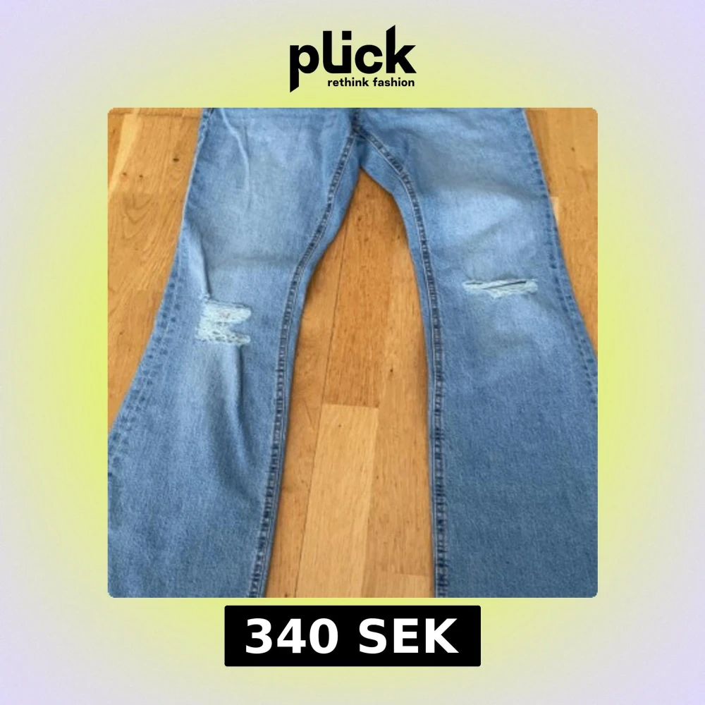 Snygga ljusblå jeans från Perfect Jeans i modell ultra low med bootcut och slitna detaljer på knäna. Aldrig använt ❤️