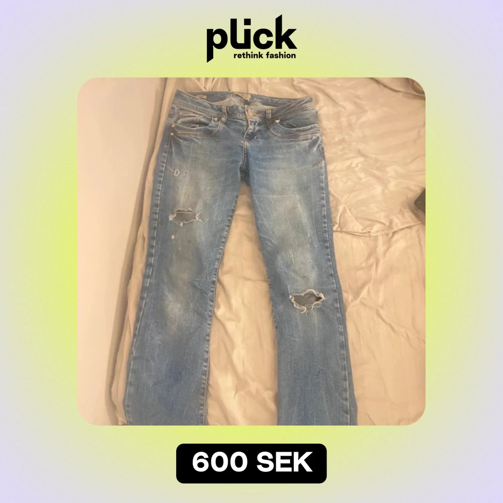 Säljer ett par blå jeans från ltb, i bra skick med coola slitningar på knäna. De har en klassisk femficksdesign och en bekväm passform. Perfekta för en avslappnad vardagslook! Storlek 27x30
