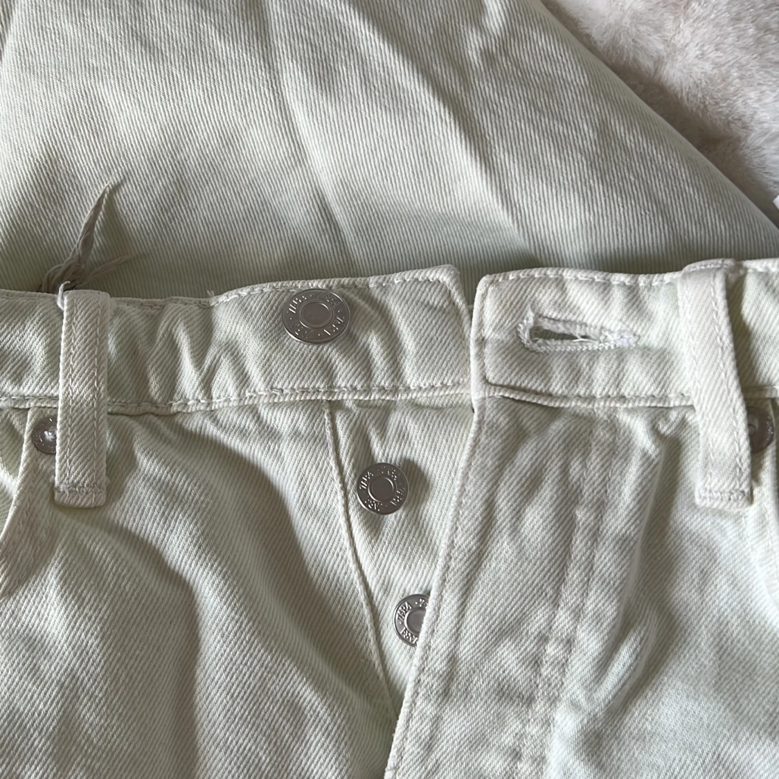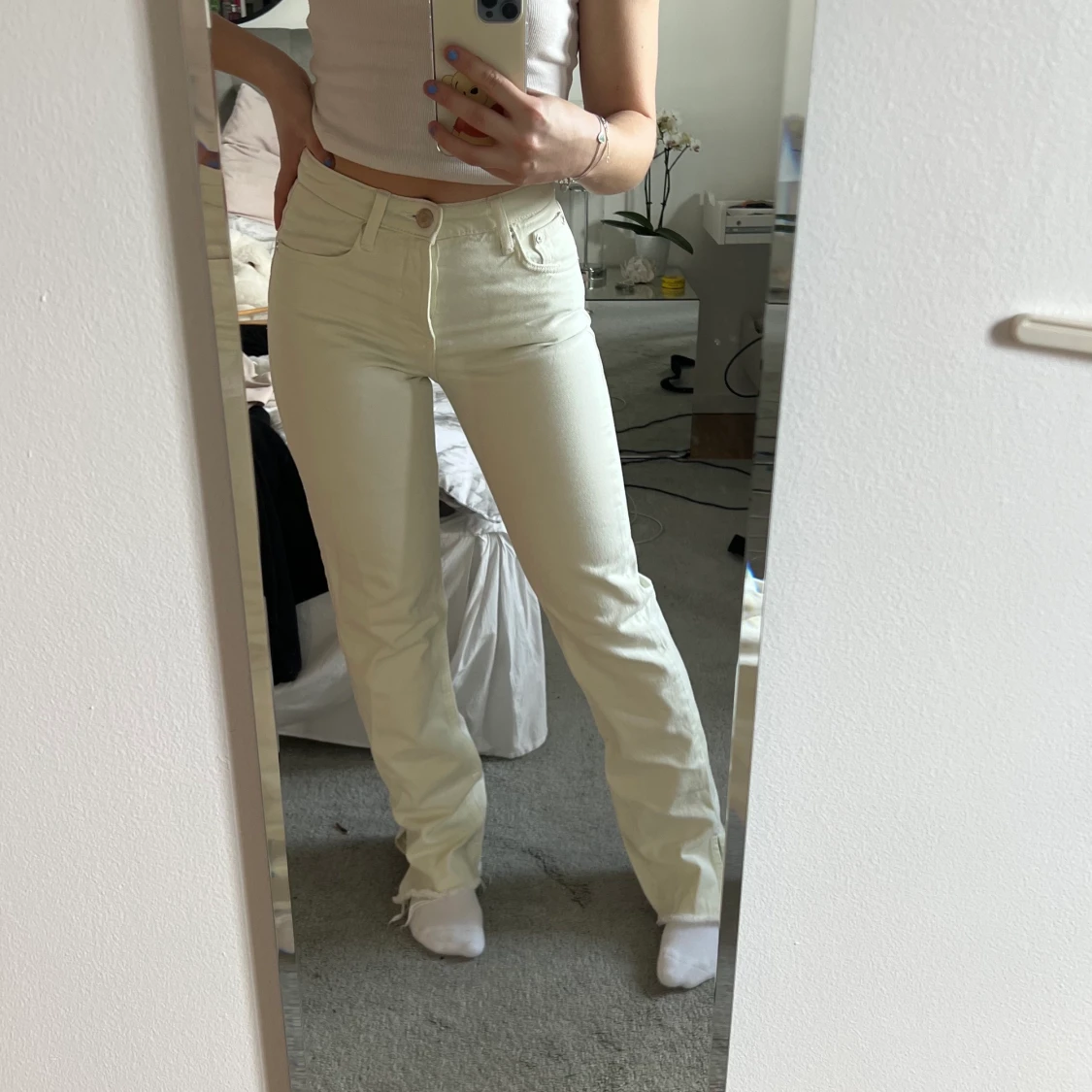 Säljer mina päron ljus gröna jeans från zara i storlek 34 med slits på sidan!🥰 använd ett få tal gånger och säljer pga av att de e för små för mig tyvärr då de e as snygga när man är brun till sommarn🌸🌸 kan tänka mig 200kr + frakt, annars skriv till mig!
