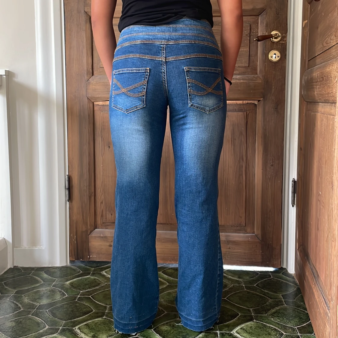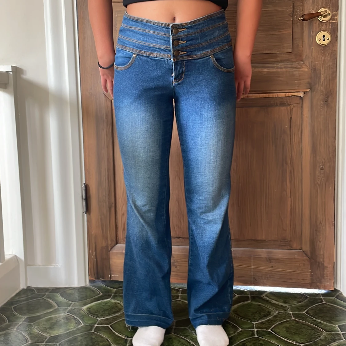 Snygga blåa jeans, medelhög midja och unika detaljer💙