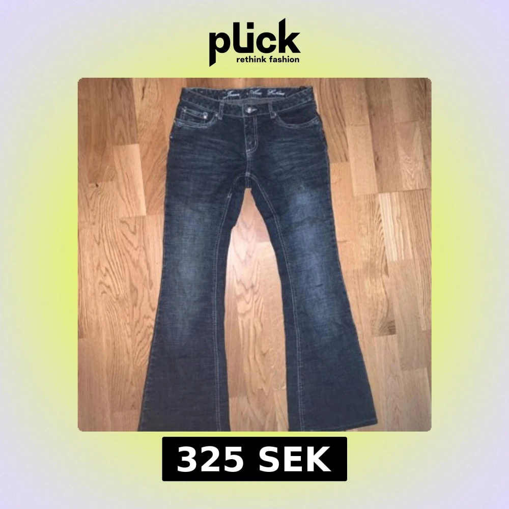 Snygga mörkblå bootcut jeans från Jouer Aux Echecs med broderade bakfickor och klassisk femficksdesign. Jeansen har markerade sömmar och en lätt tvättad look. Perfekta för dig som gillar en retro vibe och vill sticka ut lite extra.