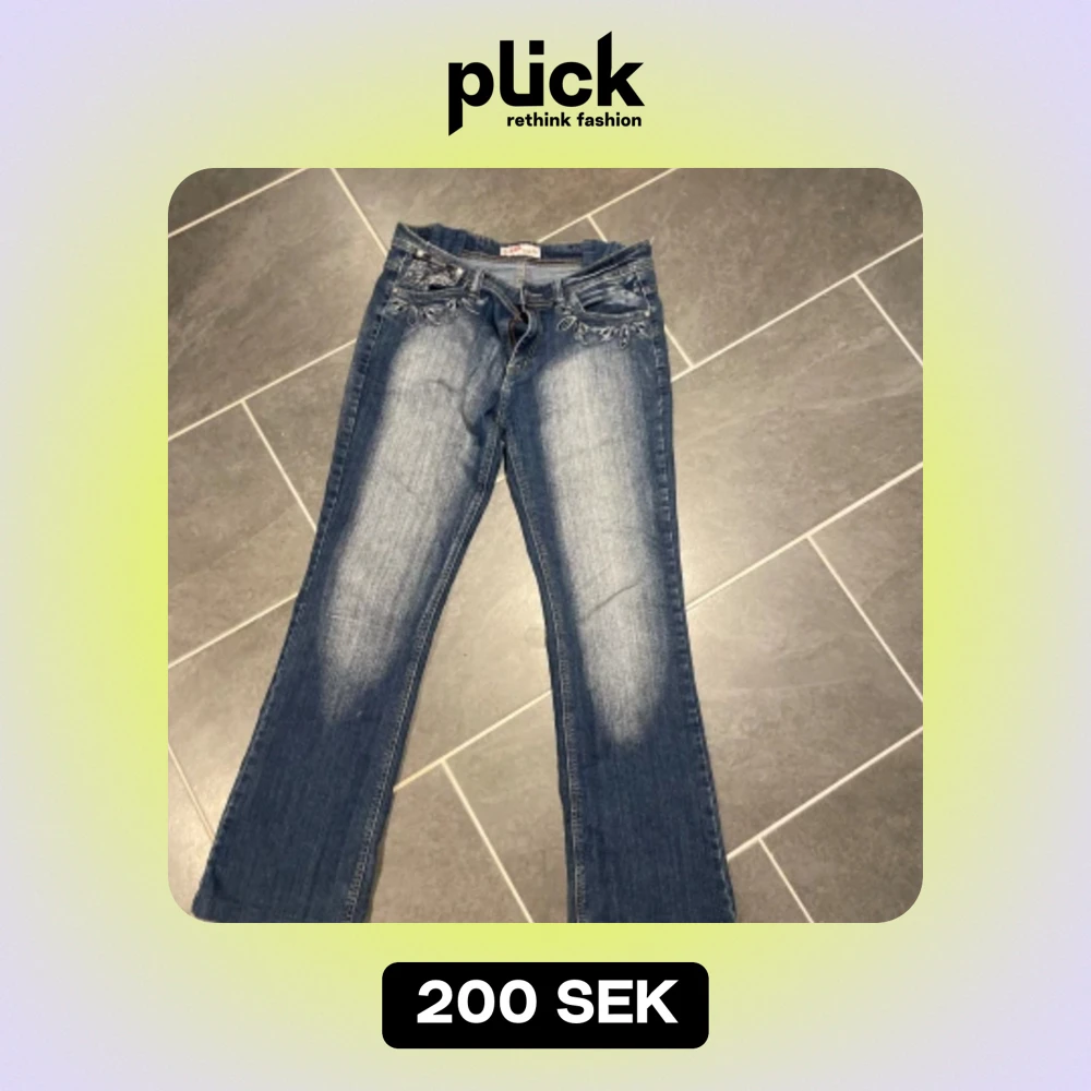 Jeans med mycket detaljer. Midjemått 90cm och längd 100cm. Har ansvänts många gånger men är i fint skick och är uppsydda