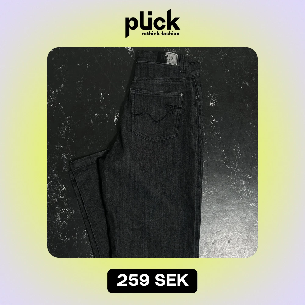 Snygga svarta jeansbyxor med fin detalj på fickorna. Innerbenslängd: 80cm. Midjemått: 33cm