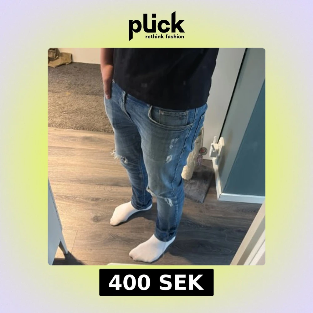 Blåa jeans från J Lindberg med slitningar. Riktigt snygga och sköna byxor som är perfekt till våren. I storlek 32/32. Passar bättre på de som normalt har 29-30, väldigt bra skick på de och pris går att diskutera. Hör av er vid frågor och funderingar