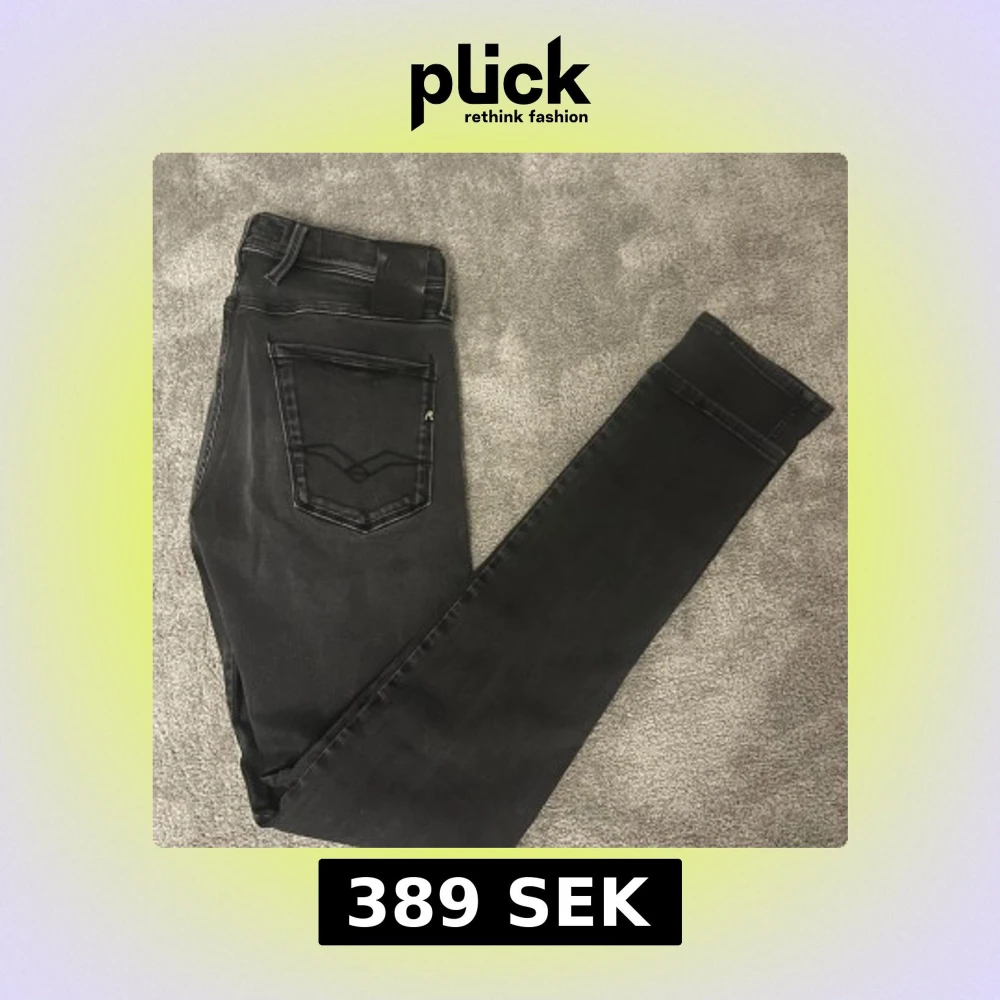 Säljer ett par svarta jeansbyxor från Replay med klassisk femficksdesign och raka ben. Byxorna har tydliga sömmar på bakfickorna och en svart patch vid midjan. Perfekta till vardags för en stilren look. Storlek 33/34 passar mig som vanligtvis har 32 i midnjan då de är mycket stretch. Hör av er vid frågor