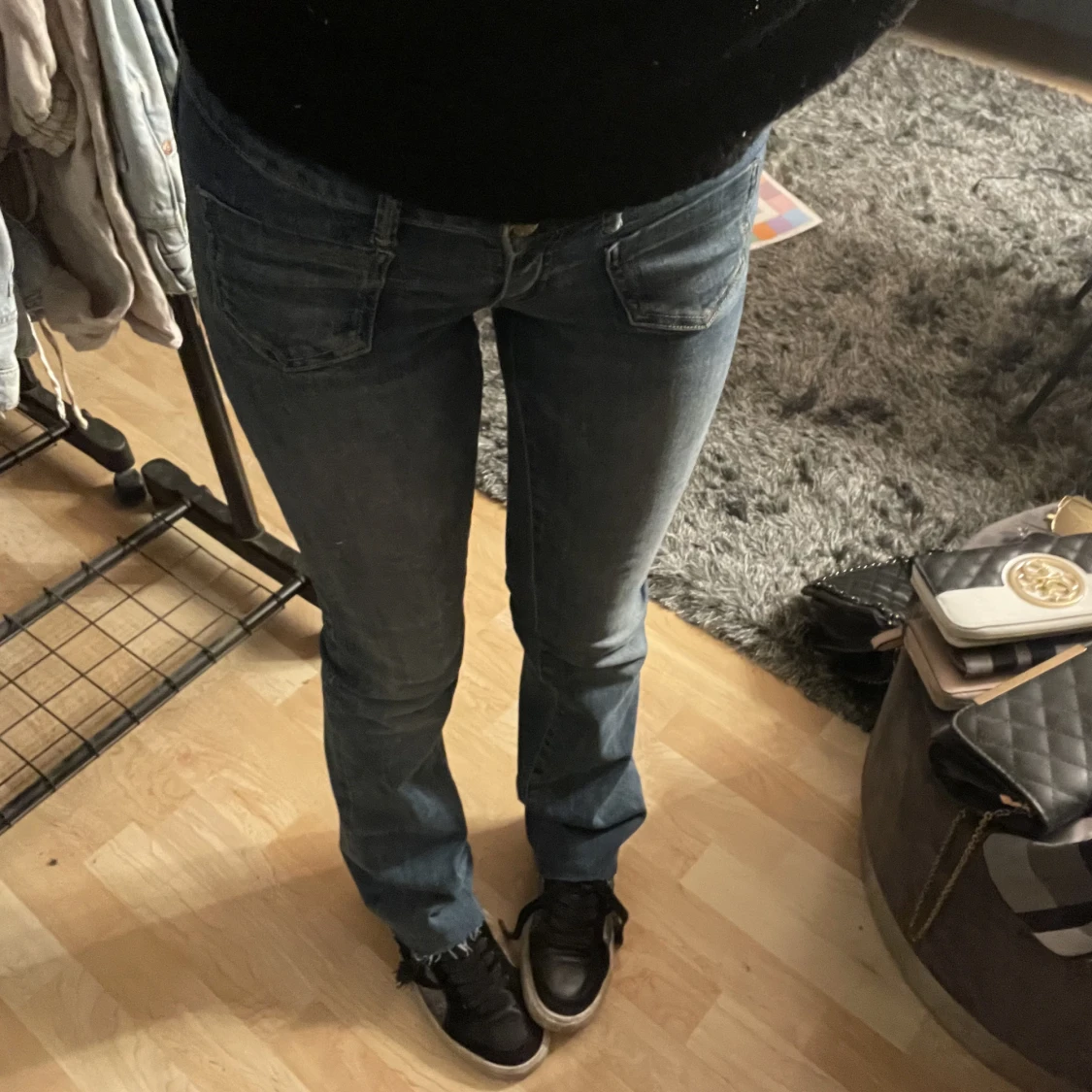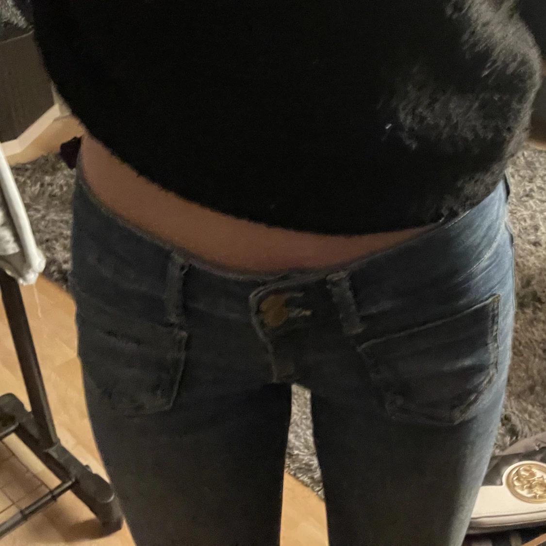 Lågmidjade jeans med fickor fram från Vera Moda, är avklippta vid fötterna och är bra längd för mig som är 165cm