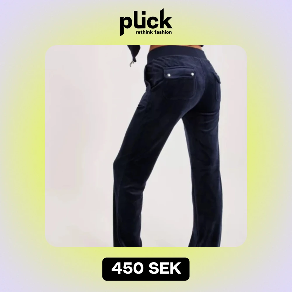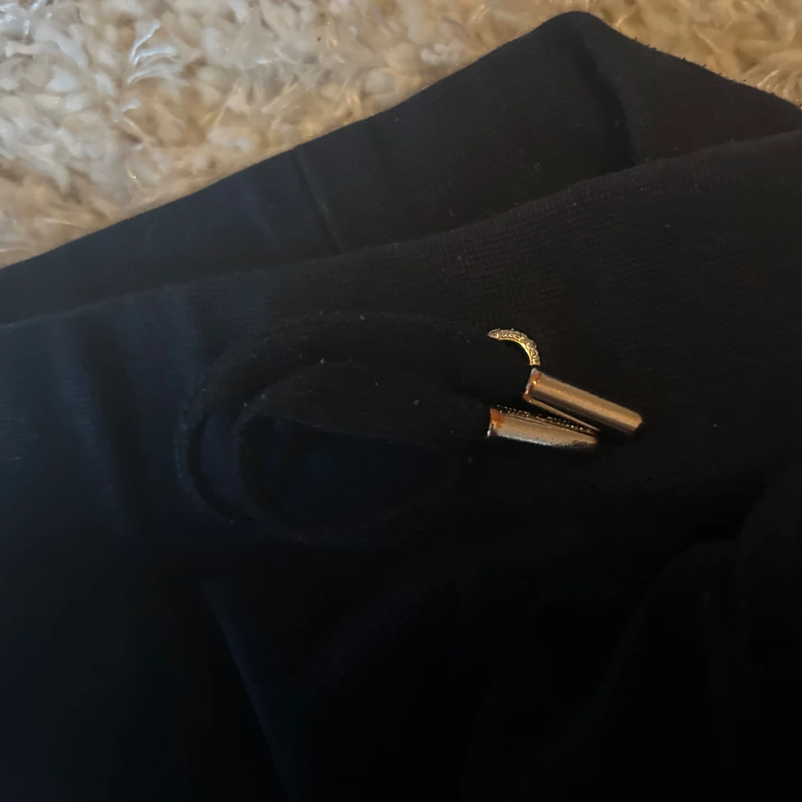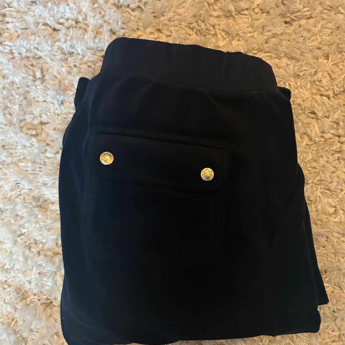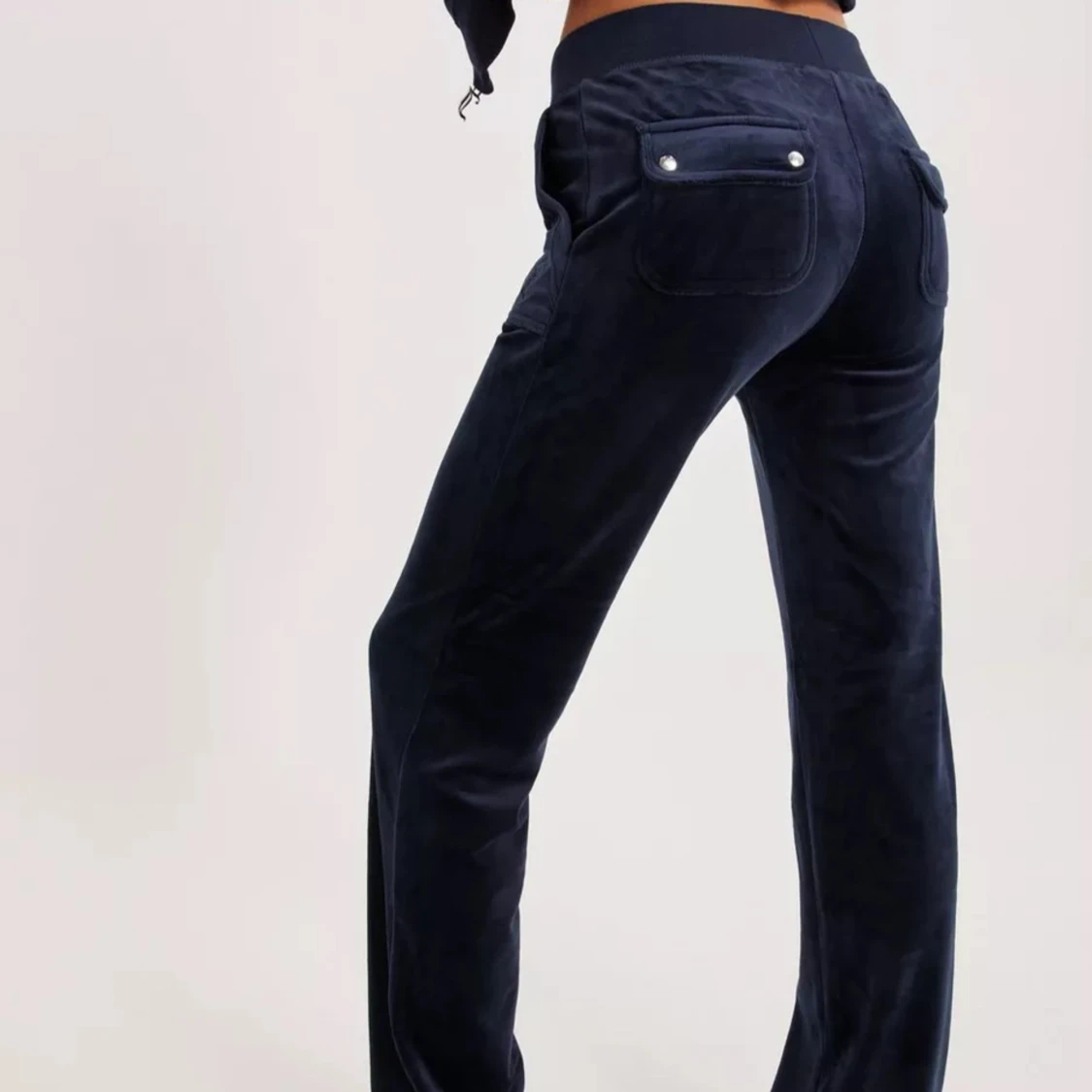Jättesnygga mörkblåa juicy byxor! Säljer då de inte kommer till användning längre. Inga defekter förutom lite rost på metallsakerna på snörerna (se bild 3), men det är absolut inget man tänker på.💘