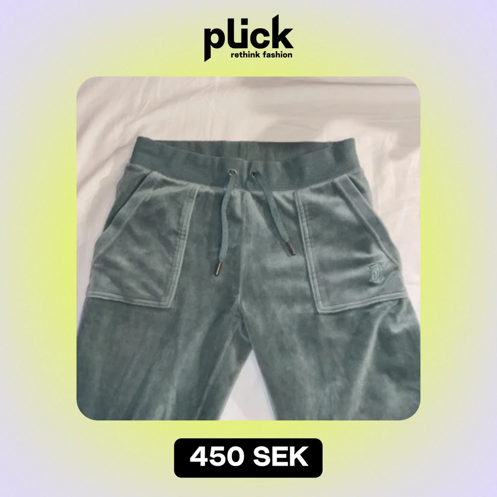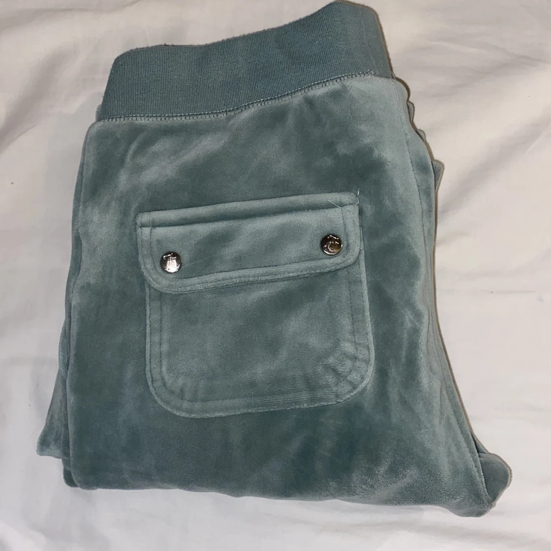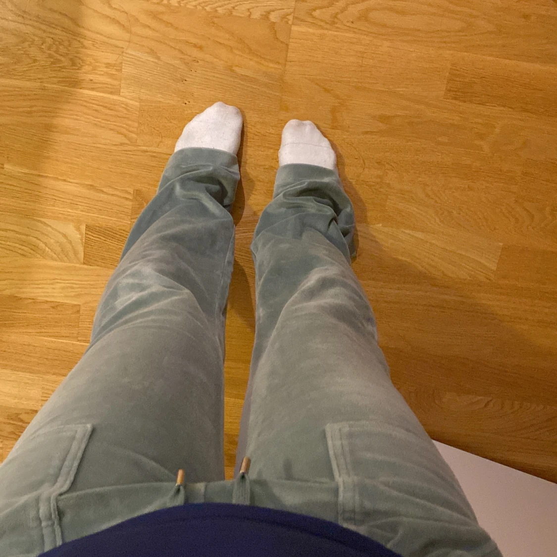Säljer dessa skit snygga juicy byxor i chinos green då jag inte använder de längre❤️de är rätt så använda och är lite smutsiga vid slutet av byxorna( se bild 3)💘