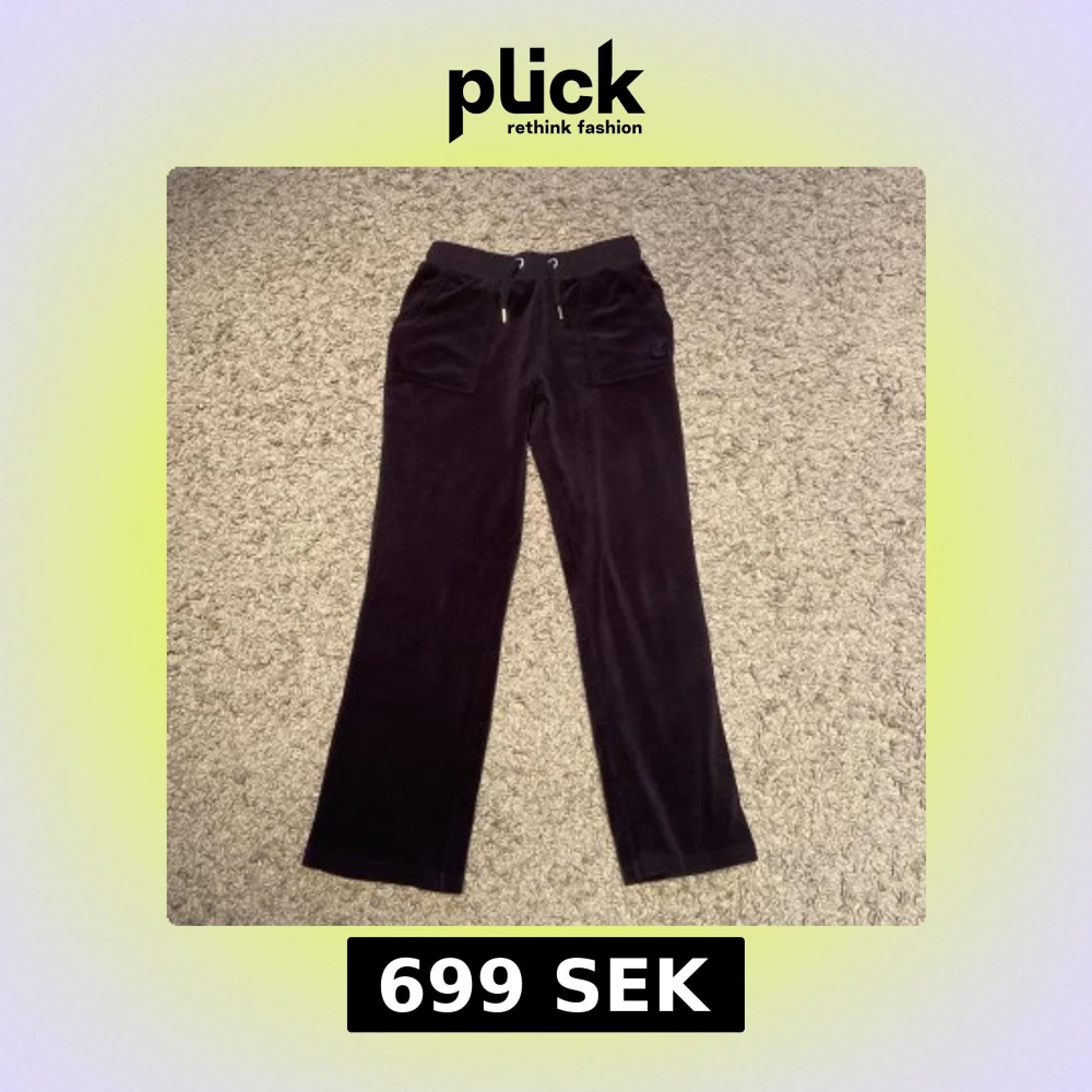 Mörk blå mjukisbyxor från Juicy Couture i mjuk sammet. Byxorna har raka ben, snörning i midjan, stora fickor fram och bak med knappar samt broderad JC-logga framtill. Perfekta för chill dagar och snygg streetstil.