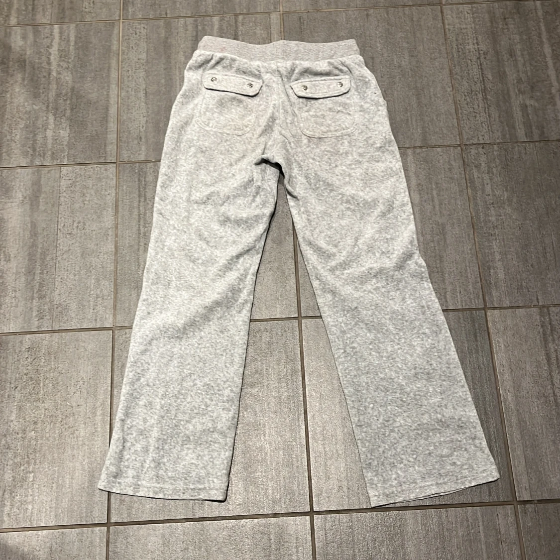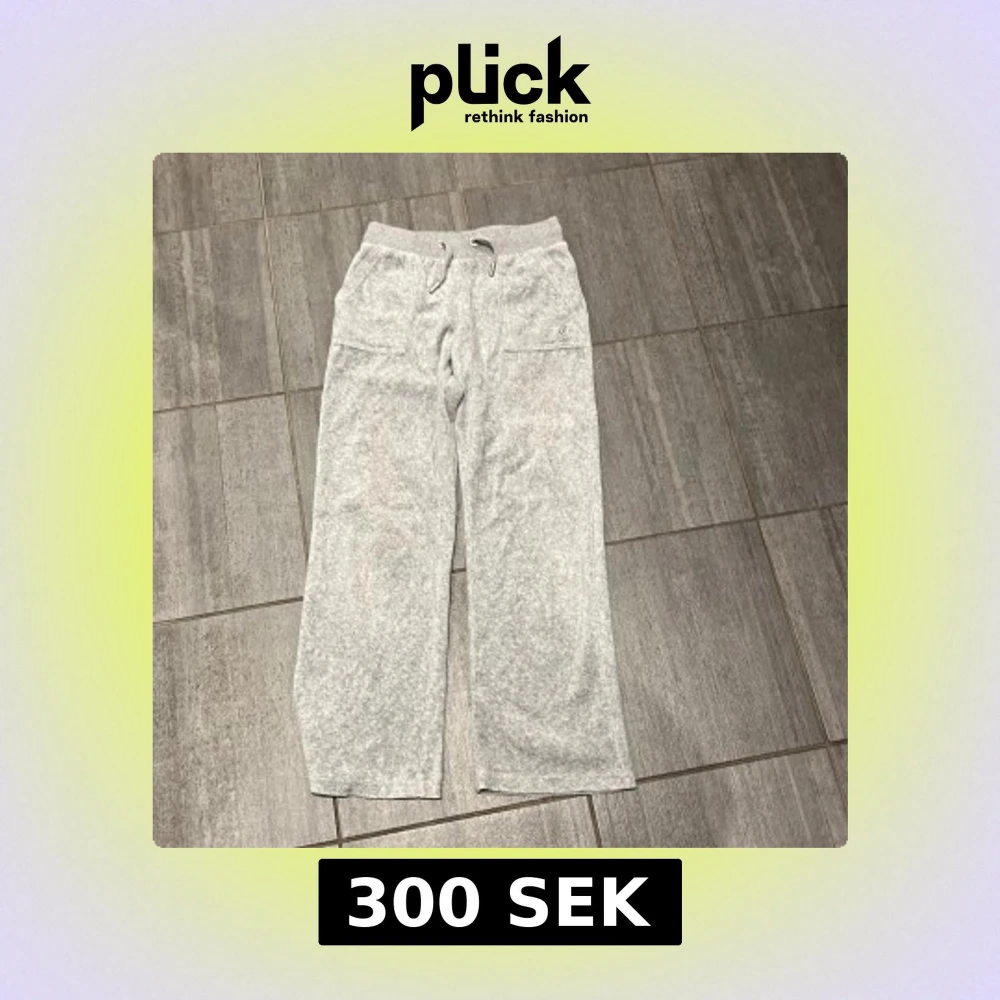 Säljer ett par grå mjukisbyxor från Juicy Couture. Byxorna har en bekväm passform med resår och snörning i midjan samt fickor både fram och bak. Perfekta för en avslappnad stil. Dom har en liten fläck på vänster ben. Priser är diskuterbart.