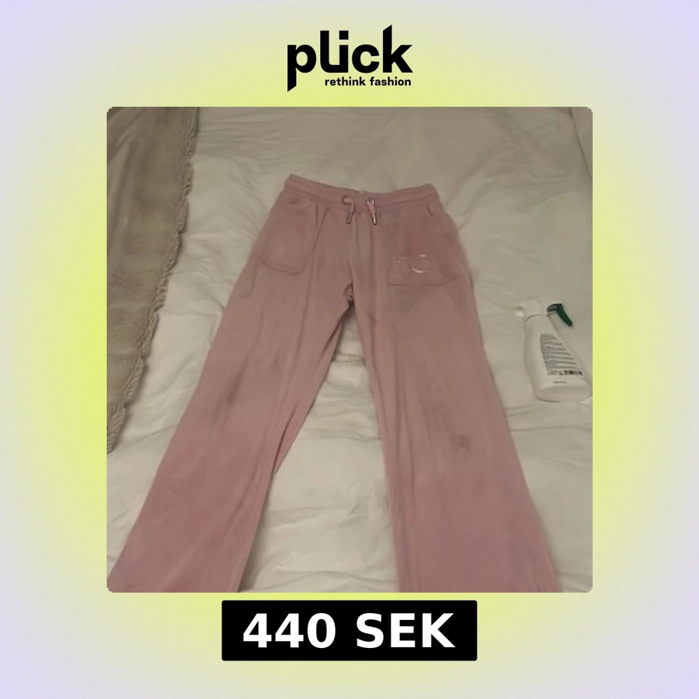 Säljer ett par klassiska rosa mjukisbyxor från Juicy Couture med broderad JC-logga på fickan. Byxorna har snörning i midjan, stora fickor fram och bak med knappdetaljer. Mjukt och glansigt material som ger en lyxig känsla. Använd runt 10 gånger men i bra skick!