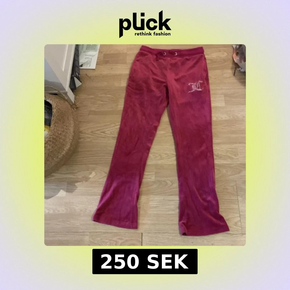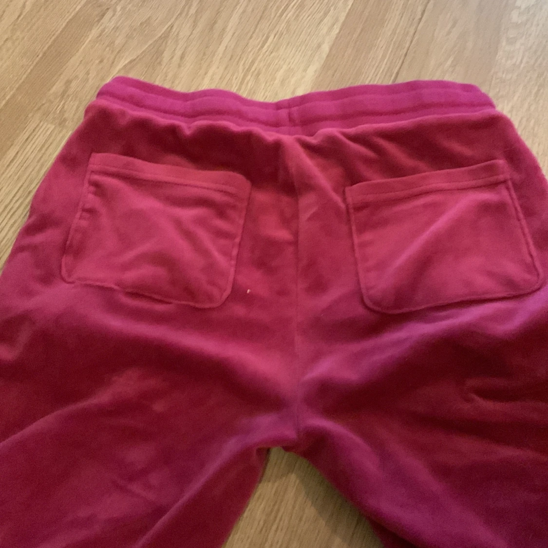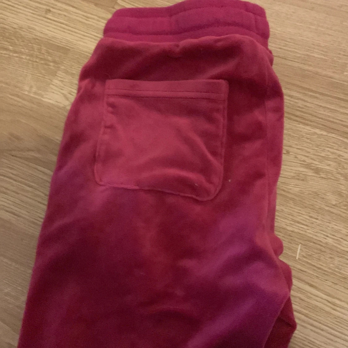 Mysiga mörkrosa / lila mjukisbyxor med snörning i midjan och två bakfickor. På ena benet finns en glittrig strassdetalj i form av ett JC. Perfekta för alla dagar