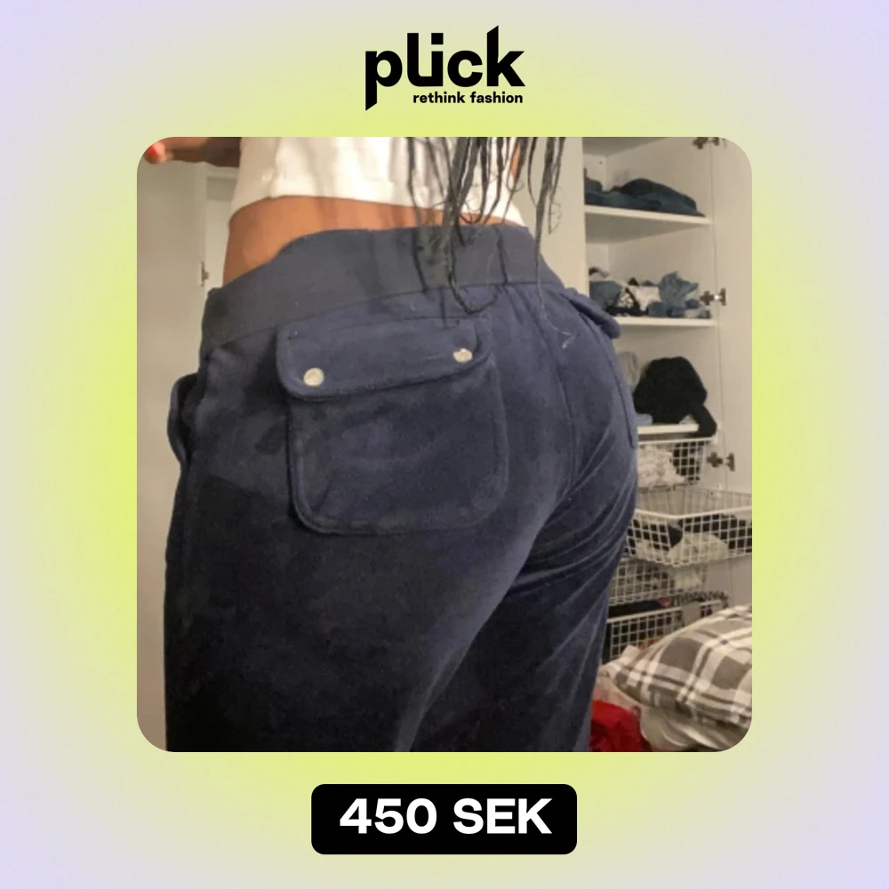 Mörkblåa juicy couture byxor som inte kommer till användning. Väldigt bra skick och därav säljs för 450kr, men priset kan diskuteras. Storlek S/36. Skriv innan du köper❗️