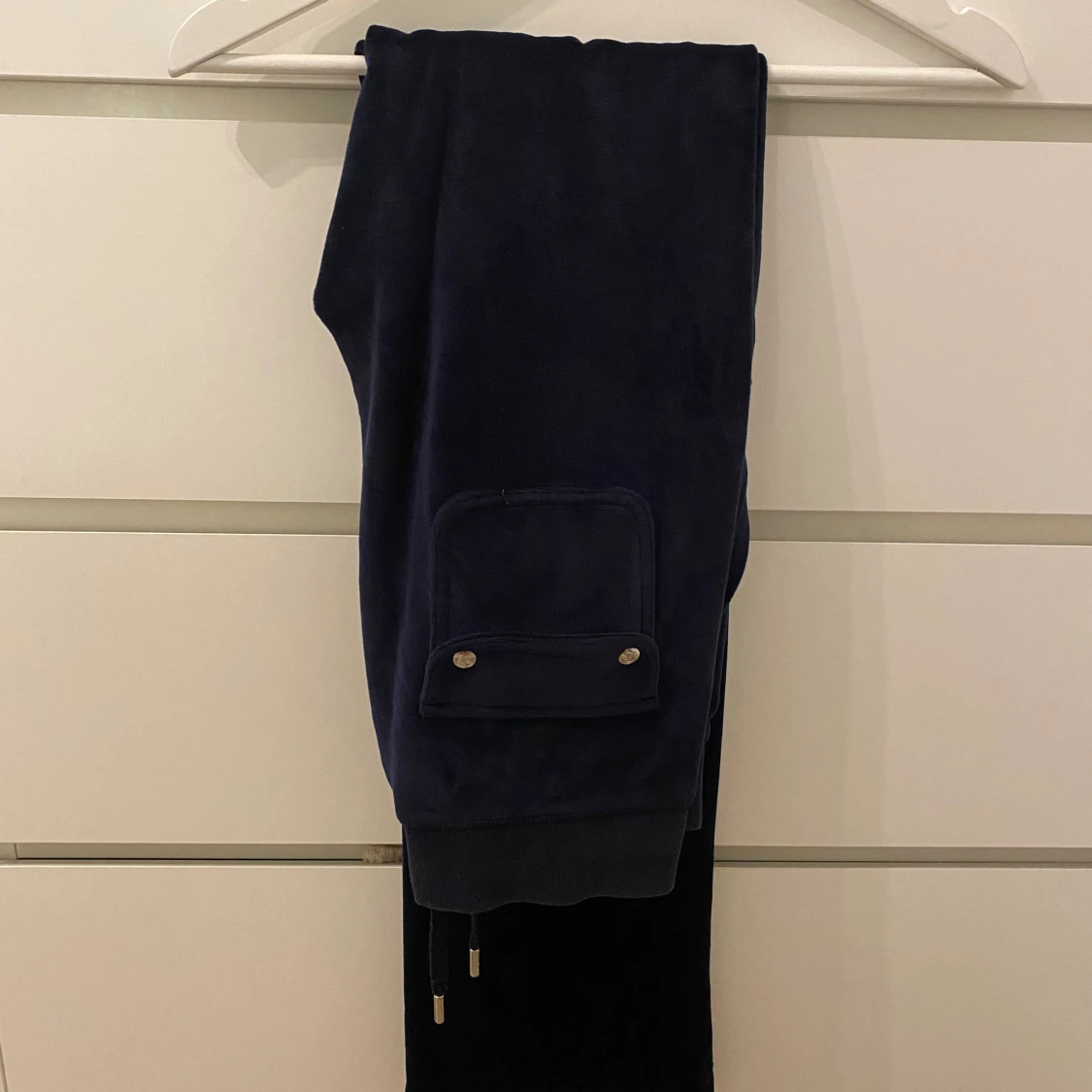 Säljer mina mörkblåa juicy couture byxor eftersom de är lite för stora😊använt fåtal gånger, så i bra skick! Köpt för 1200kr och säljer för 300kr💗