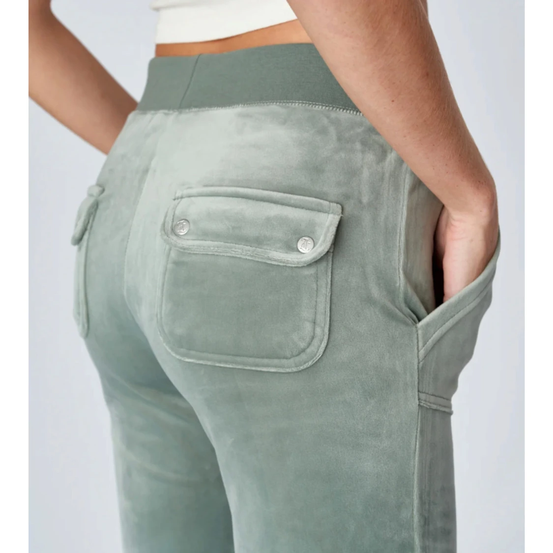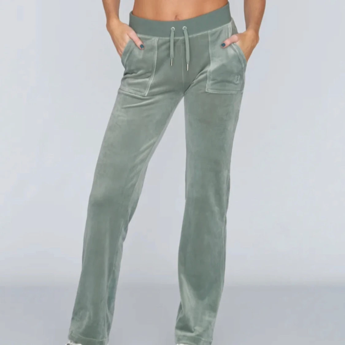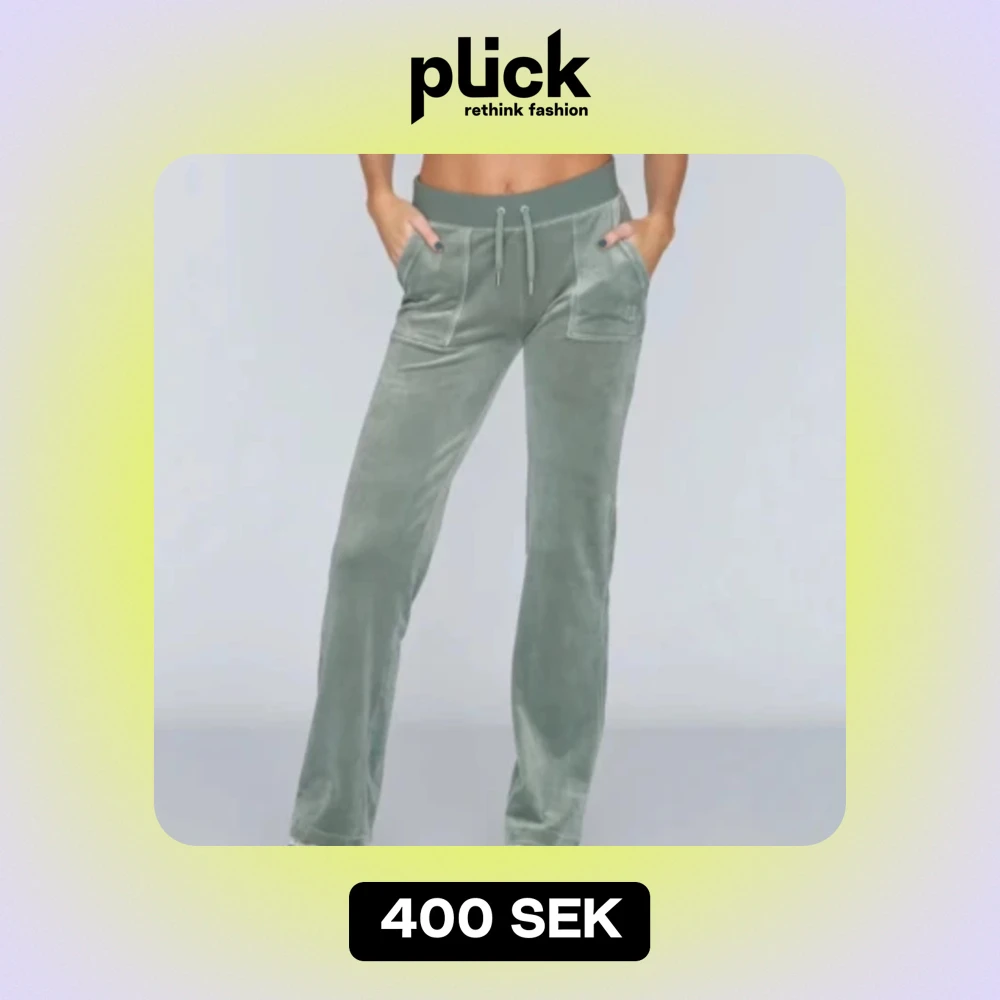 juicy byxor i färgen chinos green. Är lite slitna längst ner men inget man tänker på. Skriv för egna bilder💗 Nypris 1200kr