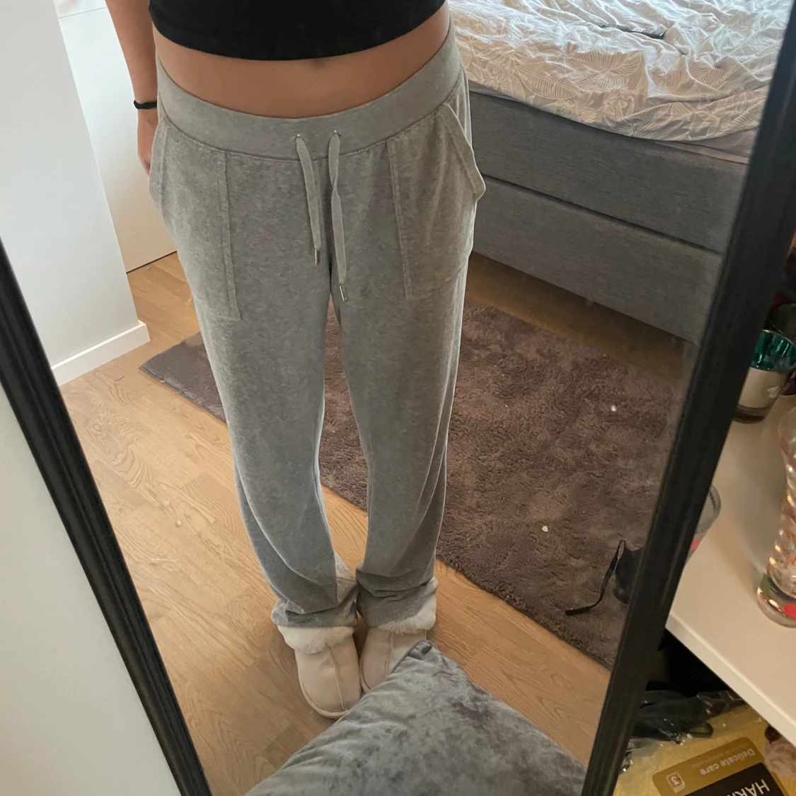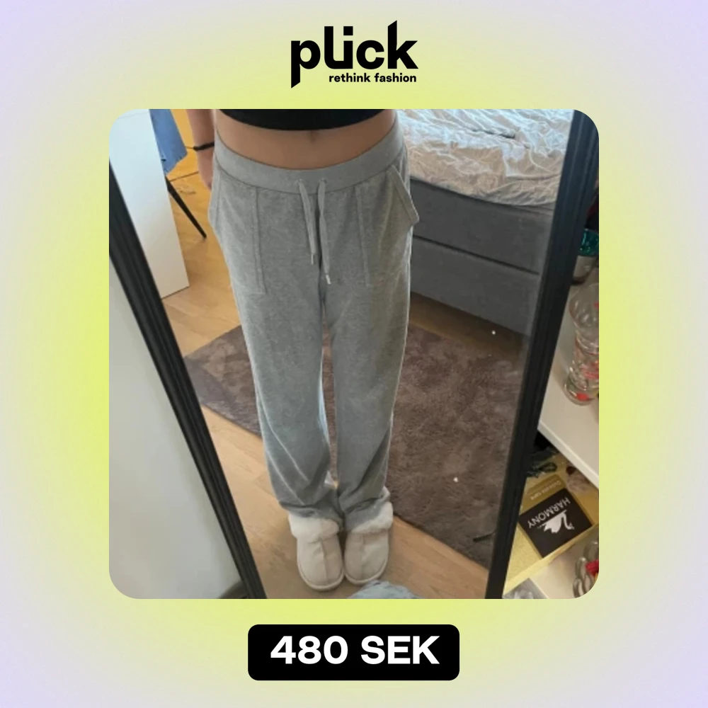 Mysiga gråa juicy couture byxor! Köpta här på plick för längesen, därav är de använda och uttöjda så de passar M/liten L (jag har S därav är de för stora på mig), annars inga defekter