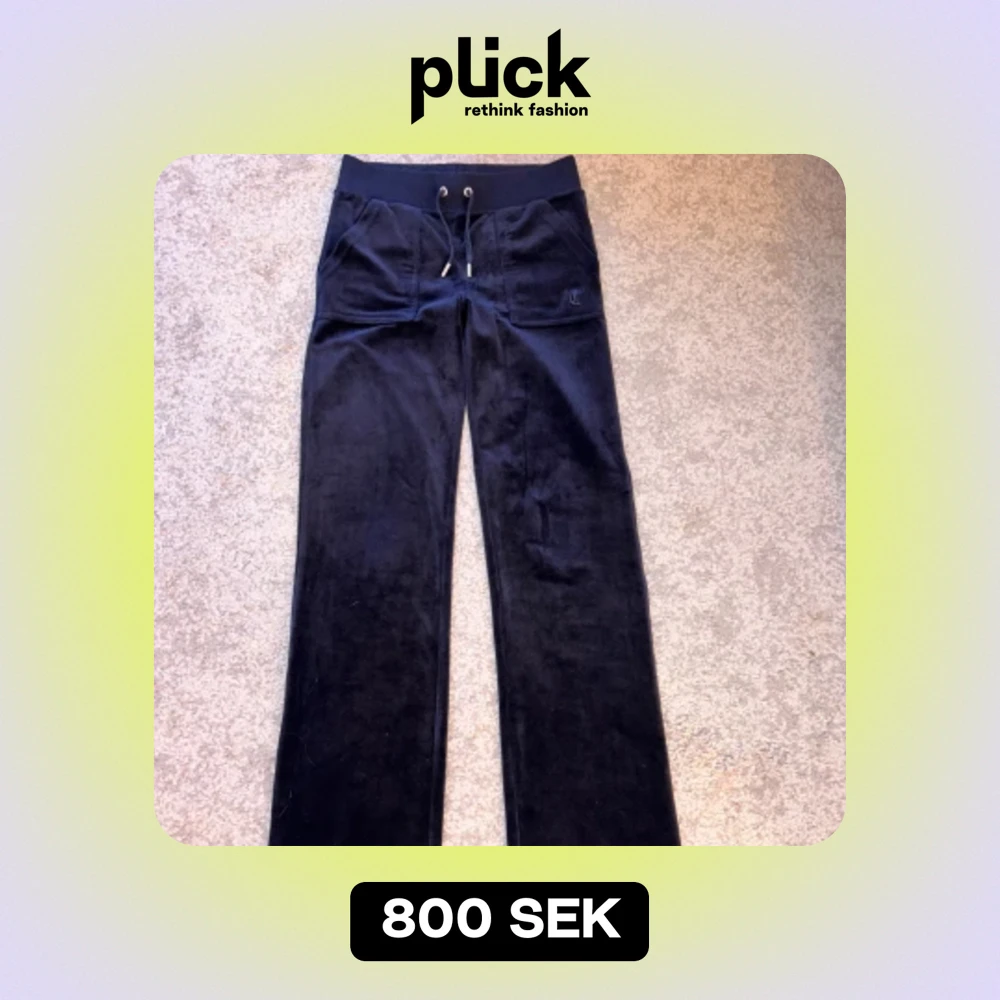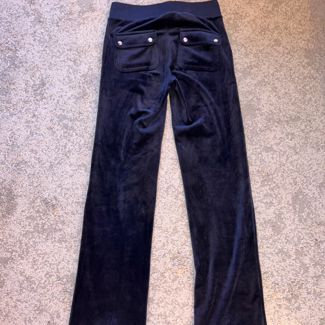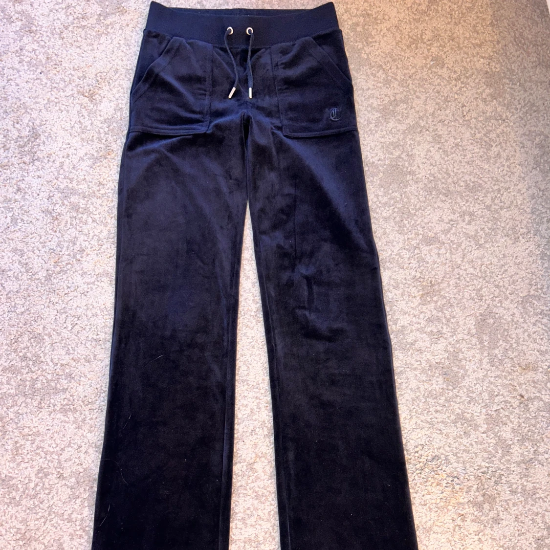 Mörkblå Juicy Couture byxor i bra skick då dom knappt är använda. Inga defekter. Midjemåttet är 35cm och innerbenslängden är 79cm