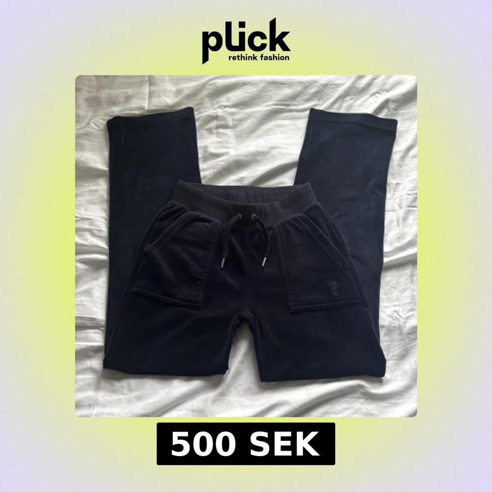 Mysiga juicy couture byxor i stl xxs.💗 Använda väldigt sparsamt men kan ha små täcken på användning. Säljer pga att dom blivit för små. Obs, på bilden ser dom svarta ut men de är bara ljuset, dom är mörkblå.