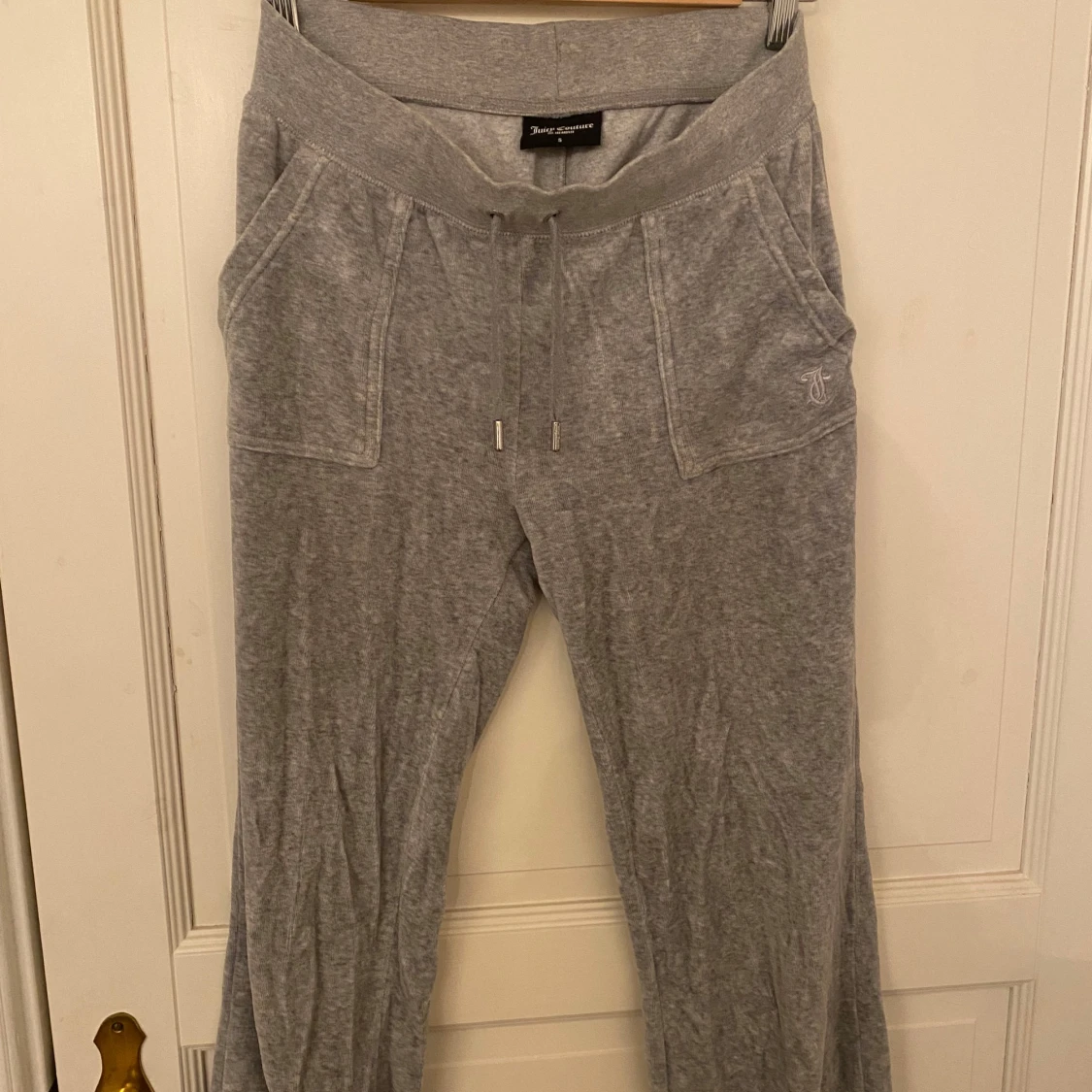 Säljer ett par Juicy Couture byxor i storlek S i grått. De har använts men är i fint skick utan defekter💕